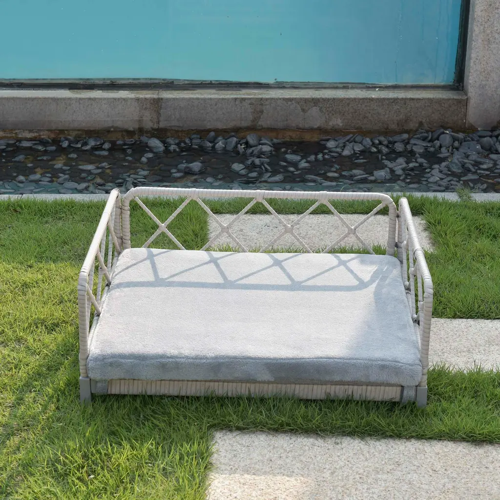 Wicker Pet Bed Rattan Dog Sofa Bed - Grey