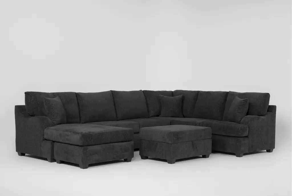 Zoeller Charcoal Grey Fabric 2 Piece U-Shaped Sectional With Left Arm Facing Sleeper Sofa Bed With Chaise & Memory Foam Mattress + Right Arm Facing Corner Chaise & Ottoman