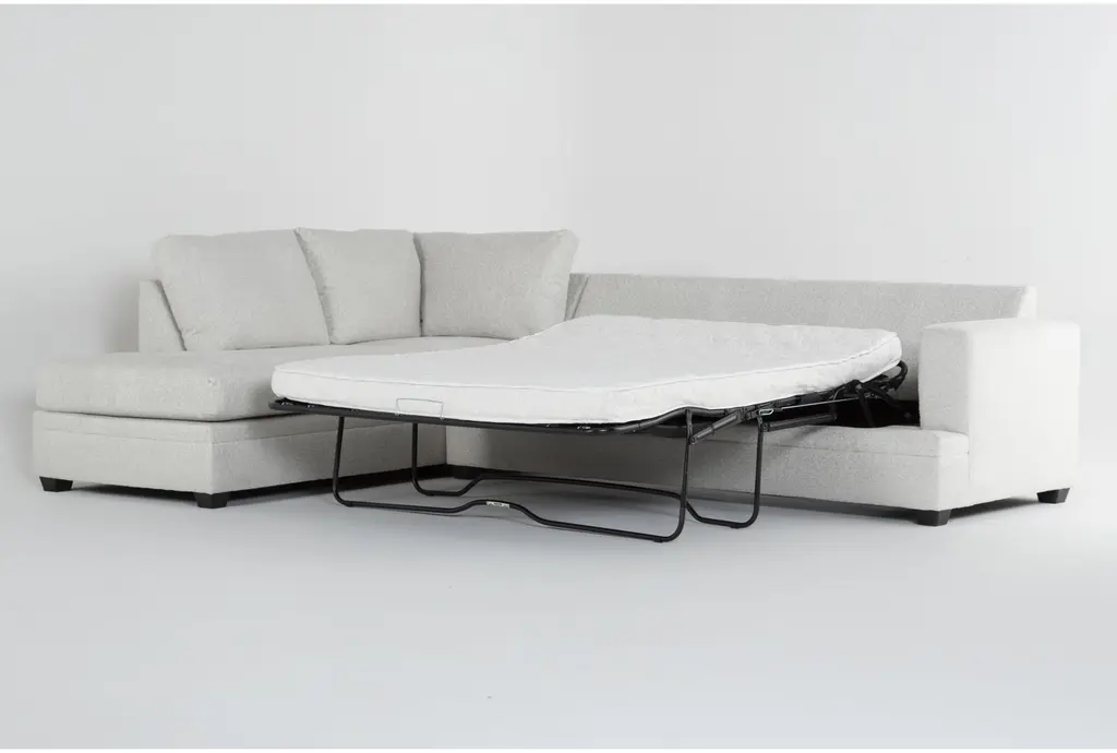 Zoeller Sand Beige Fabric 127" 2 Piece L-Shaped Sectional With Right Arm Facing Sleeper Sofa Bed With Memory Foam Mattress + Left Arm Facing Corner Chaise & Ottoman