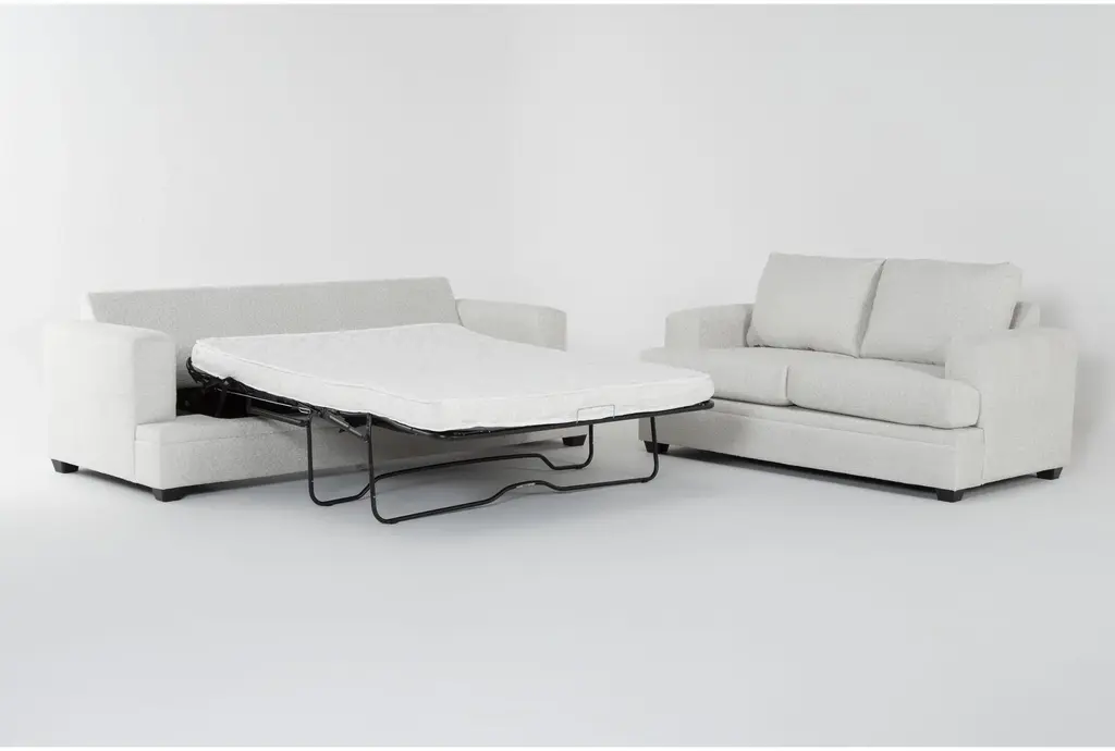 Zoeller Sand Beige Fabric 3 Piece Queen Sleeper Sofa Loveseat & Ottoman Set | Loose Reversible Back
