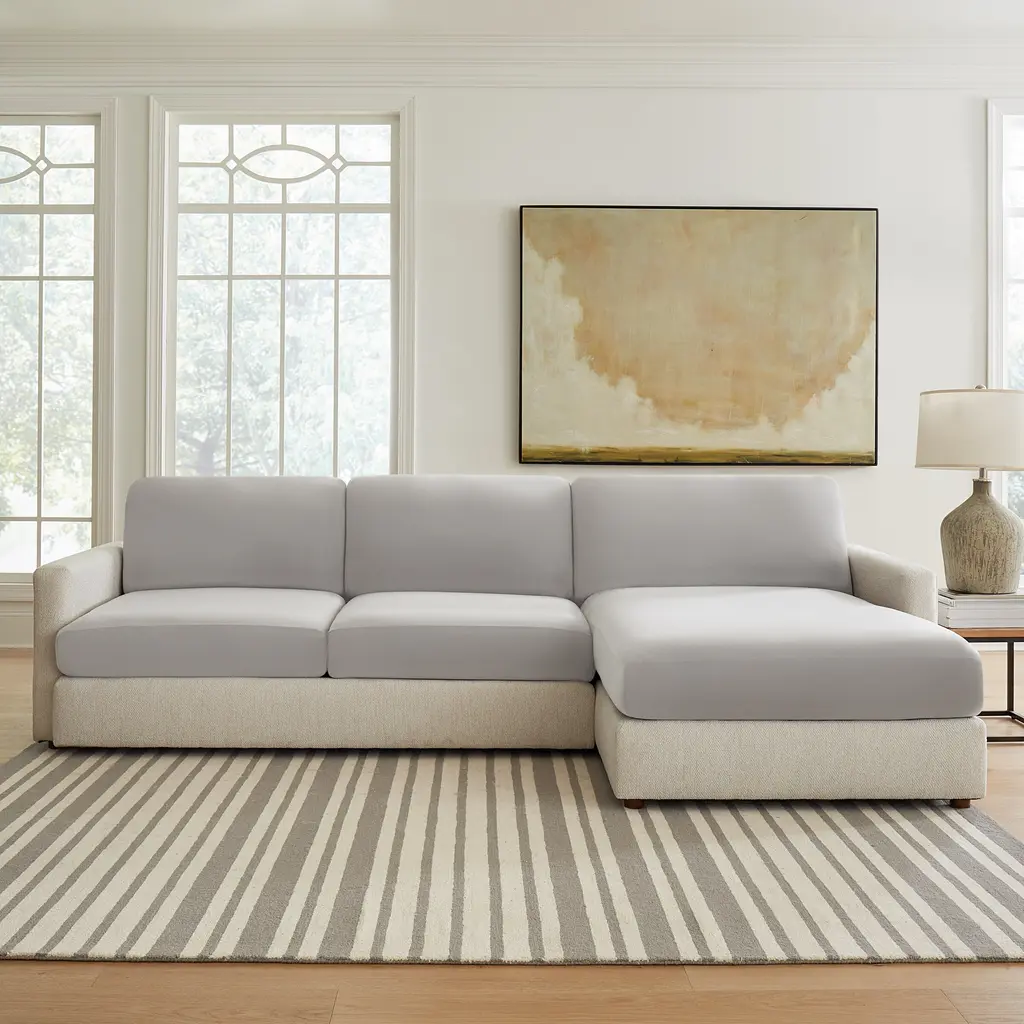 Surefit Hampstead Stretch Velvet Slipcovers, X-Long Sectional Cushion Covers - 80x48x8 - Light Gray