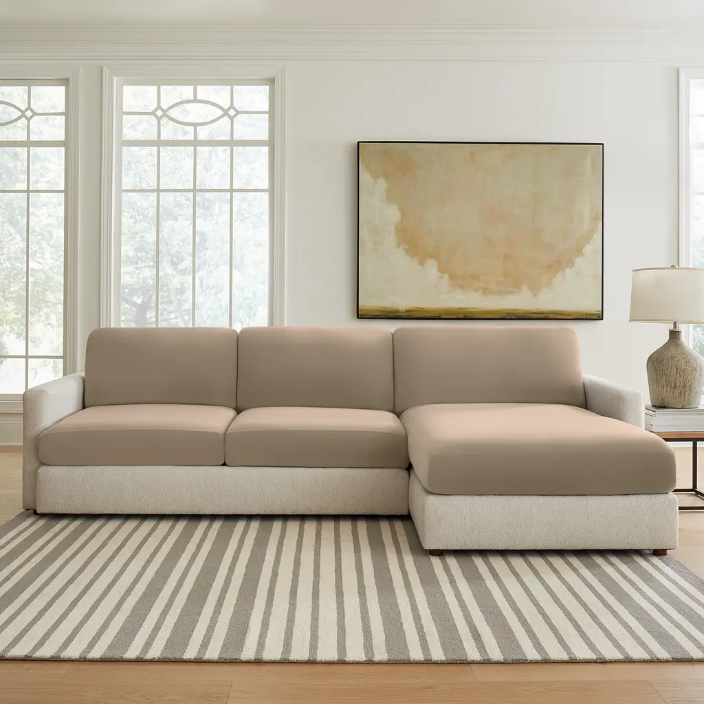 Surefit Hampstead Stretch Velvet Slipcovers, X-Long Sectional Cushion Covers - 80x48x8 - Sable