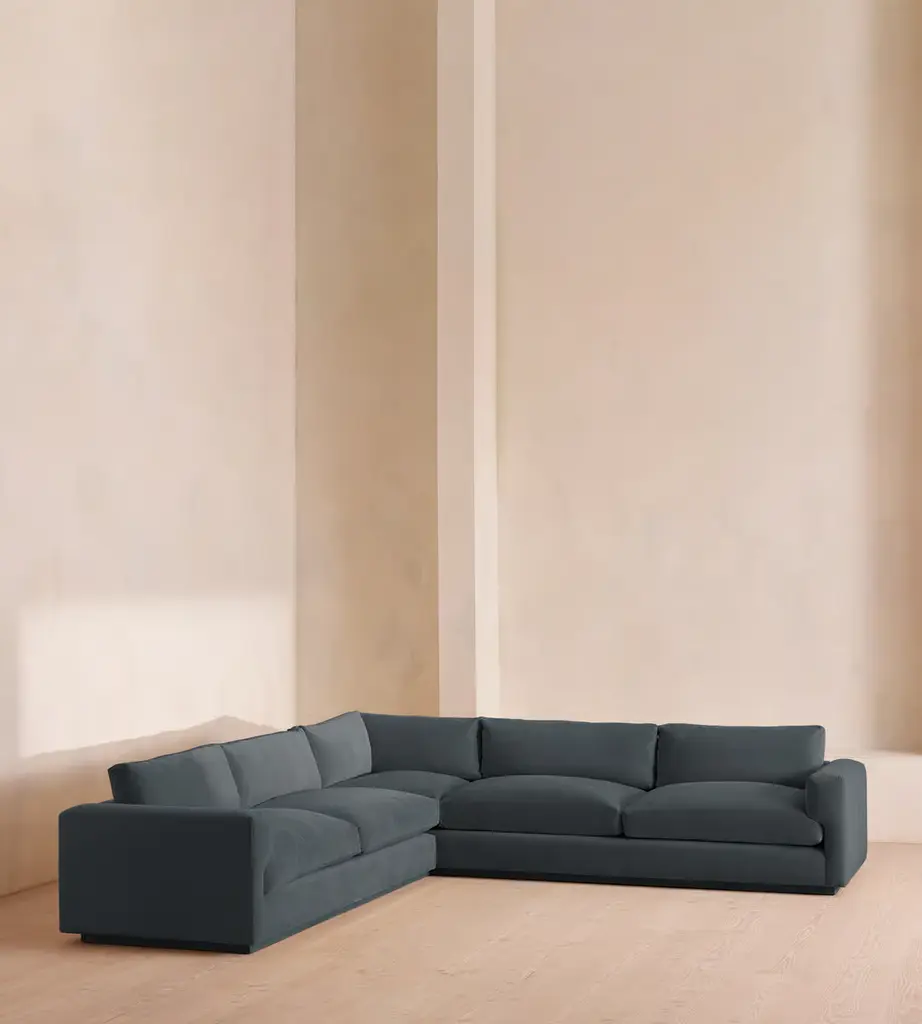 Add a layer of comfort to your Alfresco outdoor sectional with these sleekly tailored cushions. Covered with all-weather Sunbrella fabric in navy blue, our exclusive cushions keep your four-piece petite L-shaped sofa looking fresh all season long.Additional Sunbrella® cushion colors available.