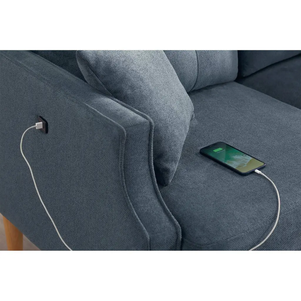 Bedroom Loveseat Accent Sofa Cushion Sofa With Button-Tufted Back And Usb Outlet Fabric Sofa Recliner Sofa - Dark Blue