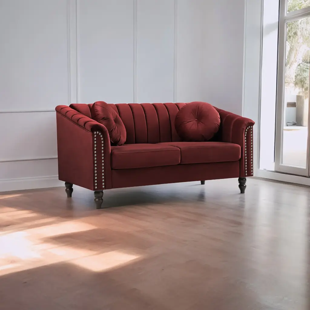 Bedroom Loveseat Accent Sofa Cushion Sofa With Turned Leg And Wingback Design Fabric Sofa Recliner Sofa - Wine Red