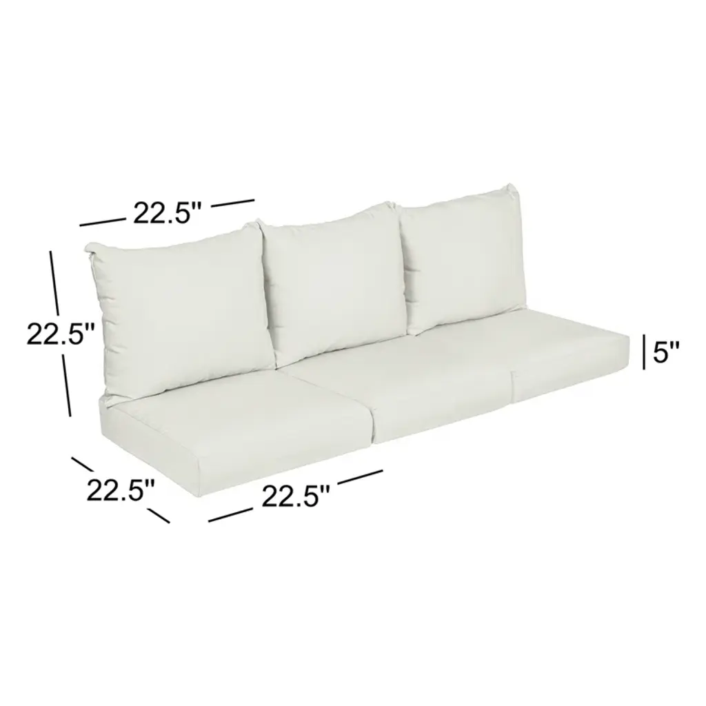 Escape to a stunning retreat in your very own backyard with the help of this adorable sofa pillow and cushion set featuring a gorgeous multi-textured fabric. This pillow and cushion set will effortlessly liven up your outdoor space while offering added comfort to help you and your guests relax after a long day. It features durable, weather-resistant material and is made in North America, offering the supreme quality you can trust!
