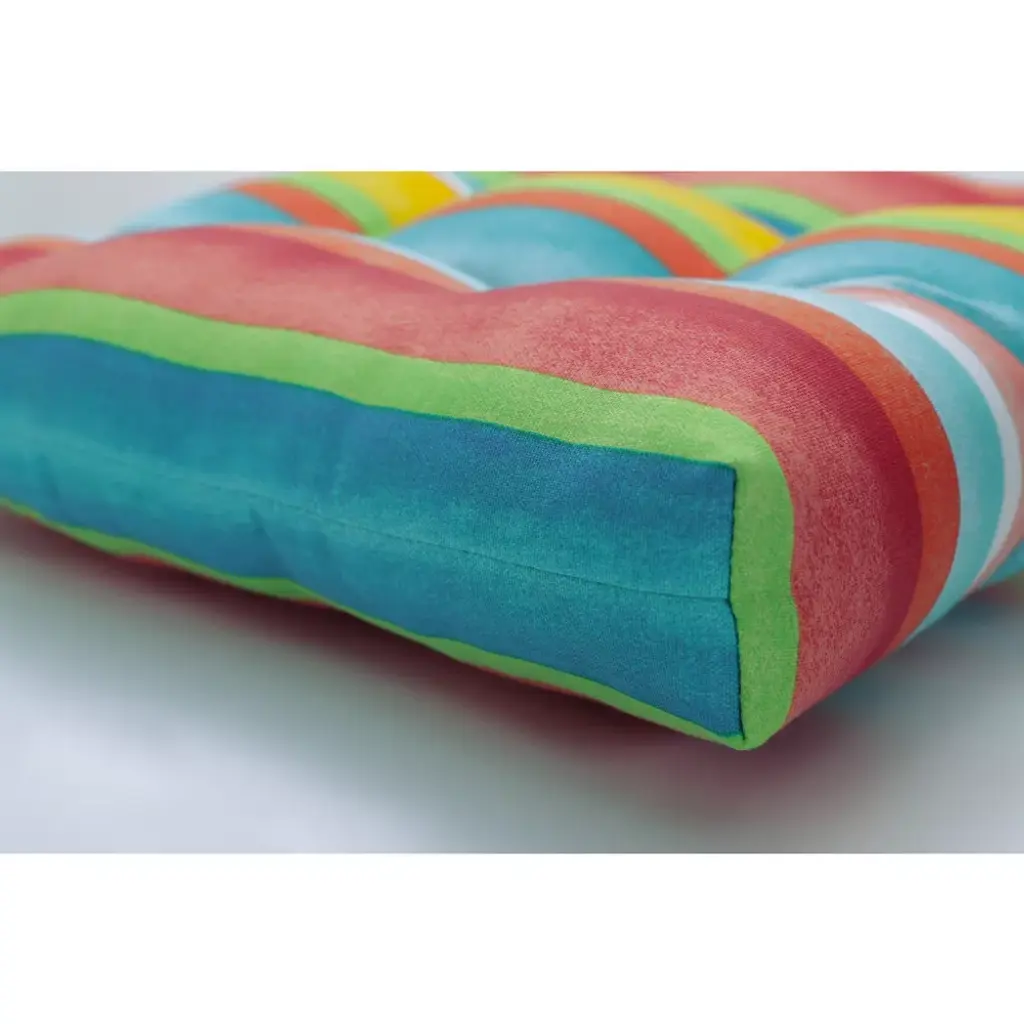 We love a classic stripe, and the cheerful ombre stripes of Dina Seaside Fiesta Multi are no exception. Featuring alternating stripes in red, orange, yellow, green, and turquoise, this print is the perfect pop of punchy brights for your deck, patio, or boat. Dina Seaside Fiesta Multi was created to be paired with a number of other Pillow Perfect patterns and solids and is available in a variety of pillow/cushion shapes and sizes.