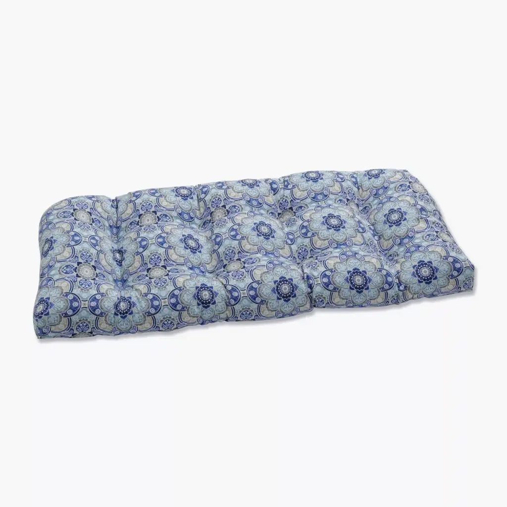 Outdoor/Indoor Wicker Loveseat Cushion Keyzu Medallion Mariner Blue - Pillow Perfect