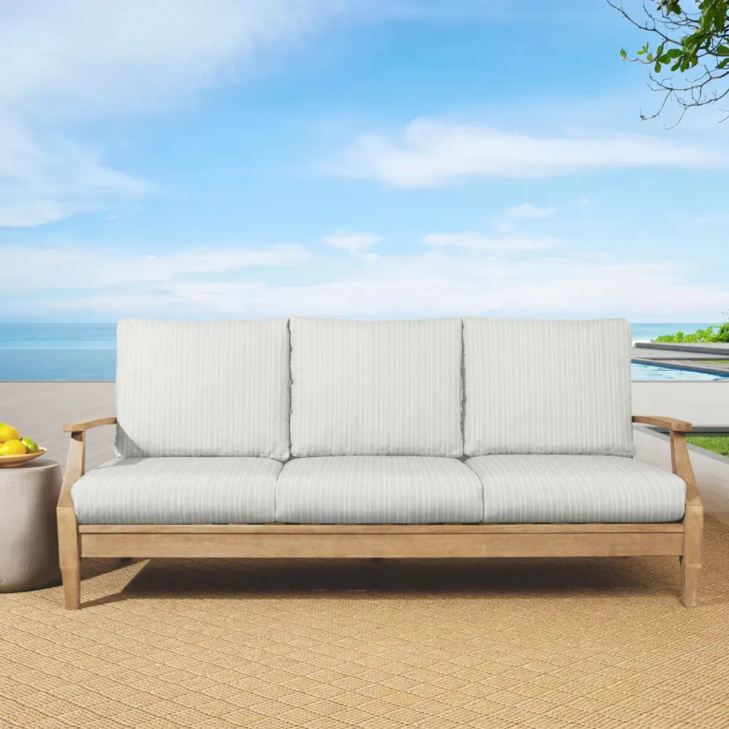 Supreme comfort and a beautiful shade of Gray mark the selling points of this beautiful outdoor sofa cushion set with a fabric stripe. Enjoy the soft, durable feel of remarkable outdoor fabric that stands up to weather and sun to resist fading and mildew. A fill of pure recycled fiber makes each cushion soft and comfortable. Remove the seat cushion covers easily through a zipped enclosure for care and maintenance. This cushion set is suitable for indoor use, so bring it inside to add a beautiful stamp to a casual space. Outdura is the trusted brand for performance upholstery fabric for outdoor and indoor use.-Outdura fabrics are made from 100% solution-dyed acrylic with color pigments infused to the core of fibers, ensuring colorfastness, UV resistance, and durability.- • Ideal for casual indoor and outdoor use• Includes three (3) back cushions and three (3) seat cushions• Seat cushion cover can be removed for easy cleaning. Back cushion cover is not removable.• Available in a variety of sizes and colors to ensure that you find the perfect match for your furniture• Cushions only. Furniture not included.• • Made in North America•