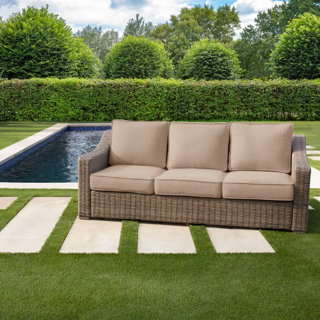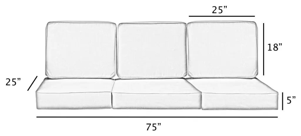 Supreme comfort and a beautiful shade, mark the selling points of this beautiful outdoor sofa cushion set with a unique fabric color. Enjoy the soft, durable feel of remarkable outdoor fabric that stands up to weather and sun to resist fading and mildew. A fill of pure recycled fiber makes each cushion soft and comfortable. Remove the seat cushion covers easily through a zipped enclosure for care and maintenance. This cushion set is suitable for indoor use, so bring it inside to add a beautiful stamp to a casual space. Sunbrella is founded on the belief that fabrics should be both beautiful and functional. We began in the 1960s with the challenge of creating an awning canvas with a substantially longer lifespan than cotton. Sunbrella has become widely adopted for shade structures, marine canvas and upholstery fabric for both outdoor and indoor applications.Our textiles are made with close attention to design detail, and engineered with robust performance characteristics that provide resistance to fading and degradation from sunlight and chemical exposure. The fabric is tactile yet durable, has industry-leading environmental characteristics, is easy to care for and offers long life wherever it''s used.No Sunbrella manufacturing facility in the world sends waste to landfills. A result of our focus on efficiency, this monumental achievement allows Sunbrella to lead by example, putting sustainability into practice every day across the globe. Our unique coloring process not only makes Sunbrella fabrics fade-resistant, it also conserves more water than conventional dyeing processes. At Sunbrella we believe it''s important to preserve the environment around our facilities. We work to conserve the plant and animal life that is native to the area and encourage our employees to plant gardens designed to provide fresh food and nourish local wildlife.We stand behind our fabrics with a guarantee that''s the best in the industry: a 5-year limited warranty for upholstery. This warranty protects the original purchaser of Sunbrella fabric. This warranty protects against Sunbrella fabric becoming unserviceable due to color or strength loss from normal usage and exposure conditions, including sunlight, mildew and atmospheric chemicals.• Ideal for casual indoor and outdoor use• Includes two (3) back cushions and two (3) seat cushions• Cushion covers can be removed for easy cleaning• Available in a variety of colors to ensure that you find the perfect match for your dcor style• Cushions only. Furniture not included.• • Made in North America•