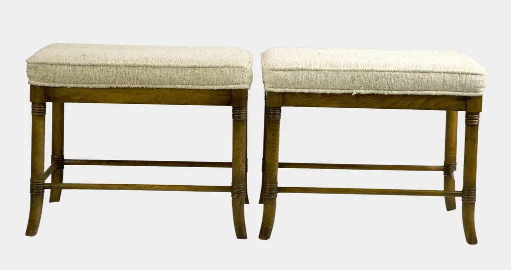 1970s Drexel Hall/sofa Table With Matching Ottomans - Set Of 3