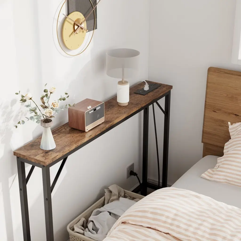 Add style and smart functionality to your space with the AOILE 39.3" Console Table, designed with a built-in power station featuring 2 AC outlets and 2 USB ports. Perfectly sized for narrow spaces, this slim table fits easily behind couches, along hallways, or in entryways without taking up much room. The modern, minimalist design pairs well with any decor, while the integrated charging station keeps your devices powered and clutter-free. Whether you're decorating your foyer or creating a sofa-side charging station, this console table offers beauty and convenience in one.