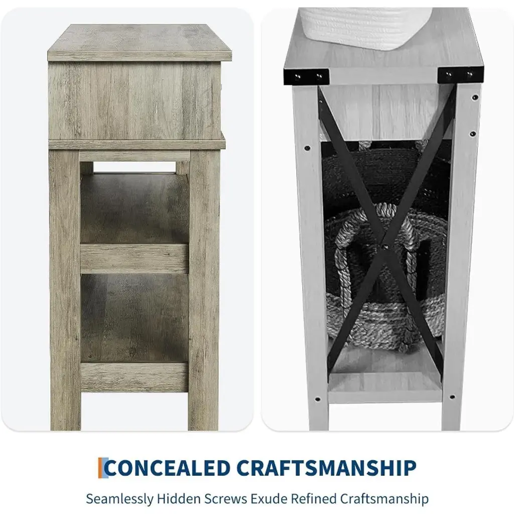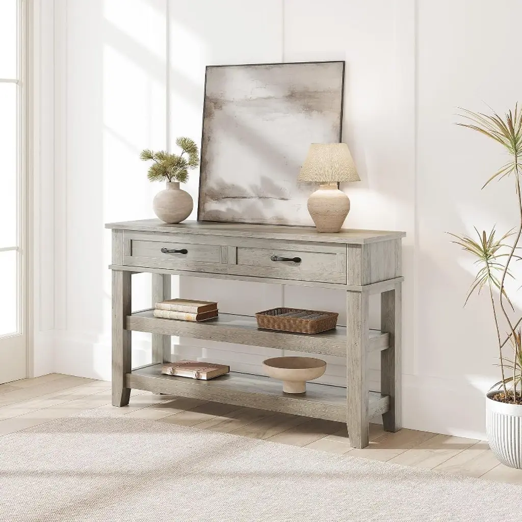 47.2" Entryway Table Console Table With 2 Storage Drawers 3 Tier Industrial Metal Sofa Table Hallway Table For Entry Living Room