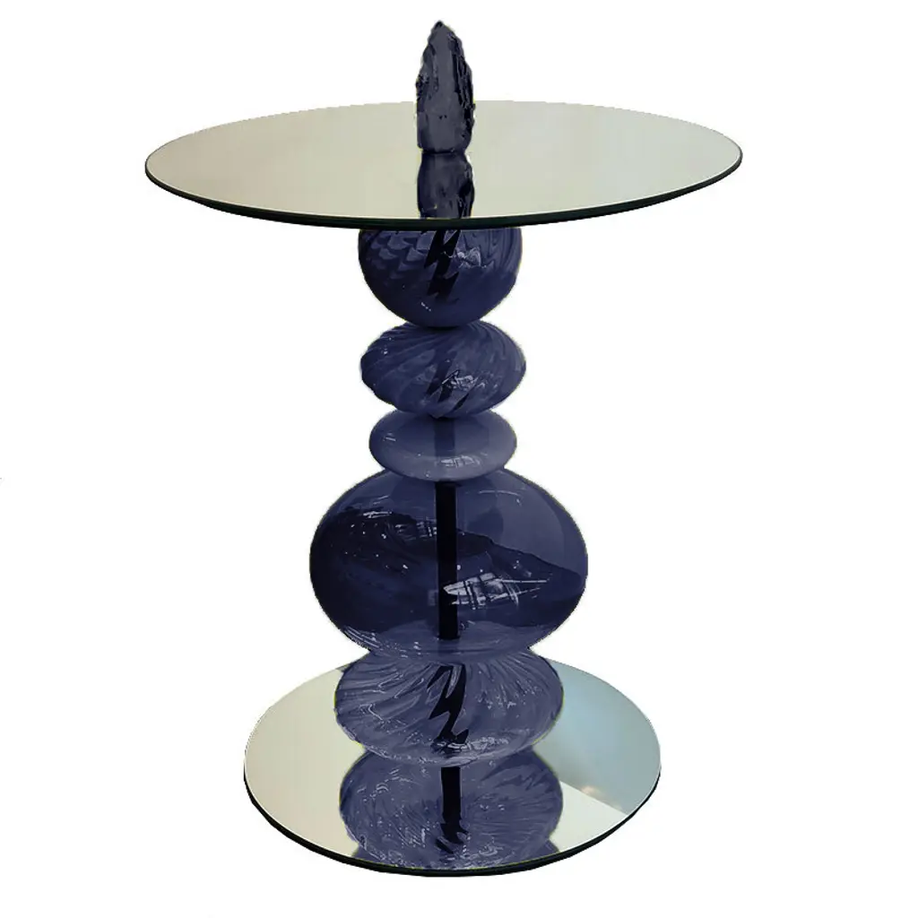 Abacus Glass Tea Table By The Drawing Room Atl In Finish Macaw - Size: Tall / Gueridon - Modern Sofa Table In Colorful Blue Glass