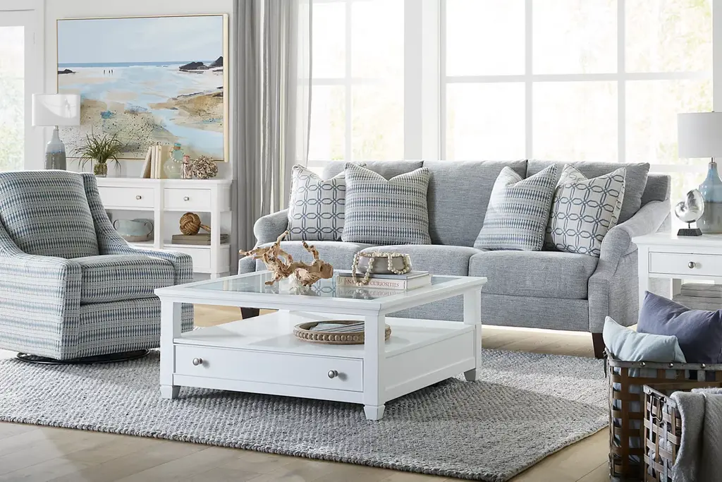 Our Arlington sofa table offers a sophisticated blend of classic materials and features with a white, hand-painted finish and poplar solids. A chic and convenient breakfront design creates extra room for storage and the fresh look of six drawers with brushed nickel hardware only adds to this piece's style.