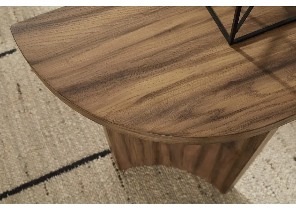 Showcasing an elevated, artistic silhouette, the Austanny sofa table expertly blends modern form and function. Its warm brown finish highlights the stunning wood grain, bringing an earthy element to staging a sofa-side lamp or other decor. Complete with a thick, substantial top, it’s a naturally beautiful living room staple in the making. Weight 59.000 lbs. (26.55kgs.)