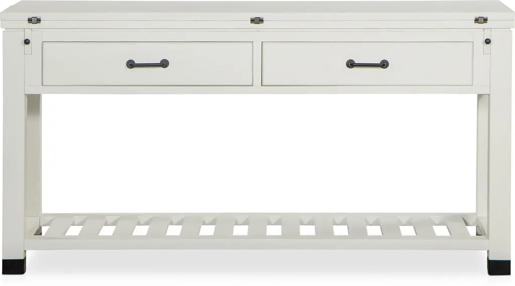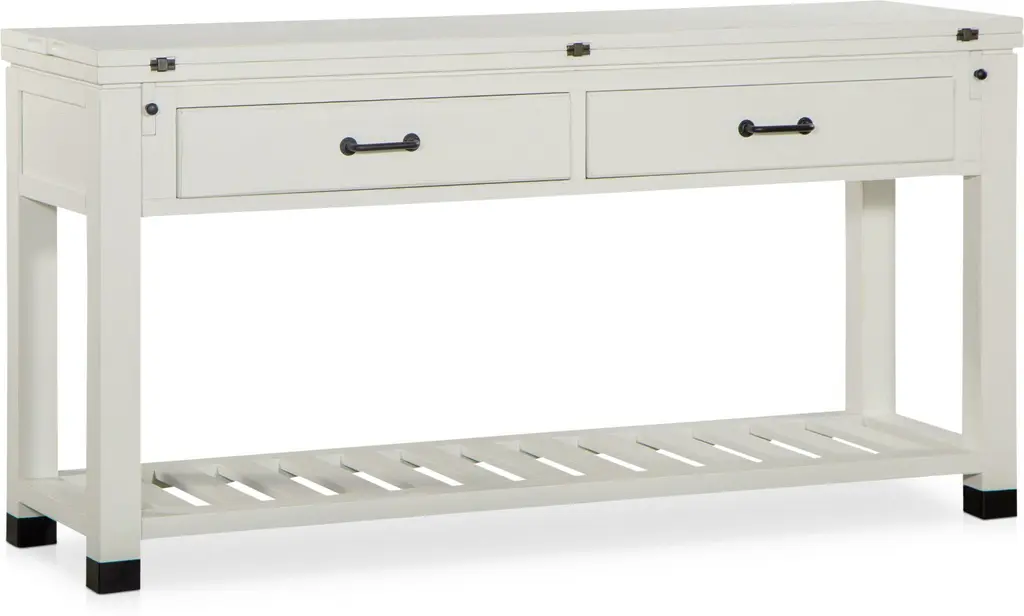 Our durable-and-modern Brooke Harbor Sofa Table adds function and style to your room. Power up around the clock thanks to the USB charging port. Need more space? Flip the two top panels down to extend the surface area.