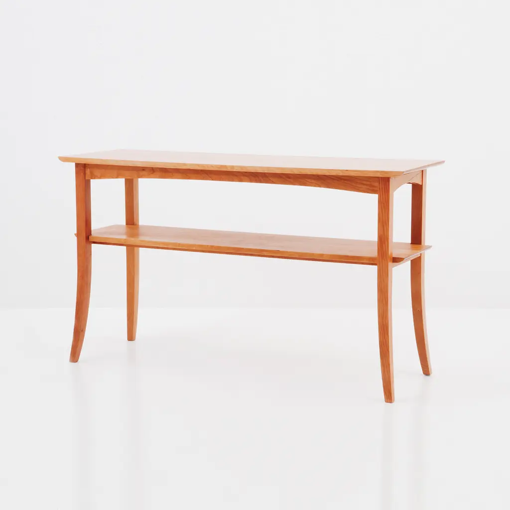 Our tall, narrow Classic Shaker Sofa Table with tapered legs is perfect for your living room, den or hallway. Add luxury, style and convenience to your upscale home with extra space to place gloves or display photos, vases or artwork.Base price represents 14"W x 42"L x 30"H sofa table in natural cherry with tapered legs and eased edge profileShown in 14"W x 48"L x 30"H sofa table in natural cherry with tapered legs and eased edge profile