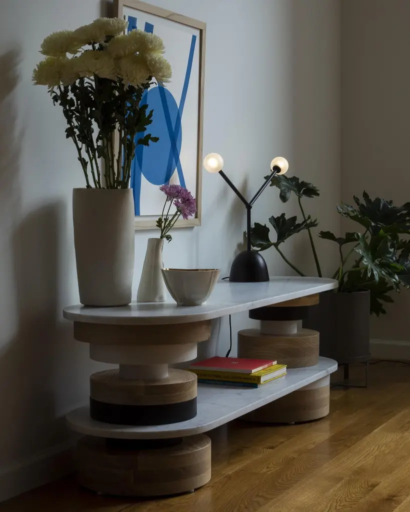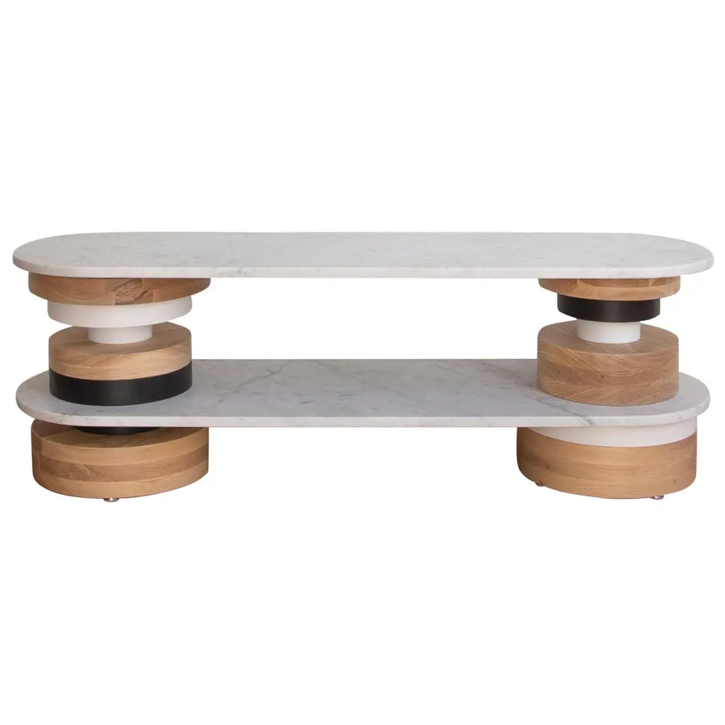 Customizable Low Sass Sofa Table From Souda, White Marble Top