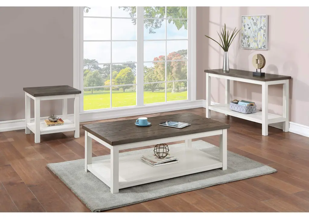 Experience the perfect blend of rustic charm and modern elegance with our two-toned cocktail table collection. This ensemble effortlessly marries the rich, warm textures of a dark wood tabletop with the crisp freshness of a white base, creating a harmonious appeal that resonates in both contemporary and traditional settings. Weight 63.800 lbs. (28.71kgs.)