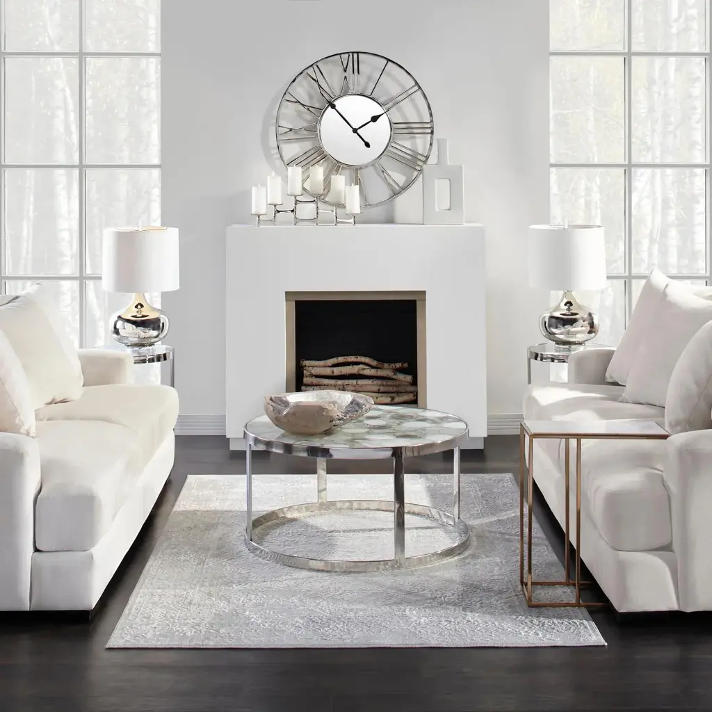 Where have you been all my life? This space-saving, marble-topped table tucks around the edge of your sofa, providing a streamlined surface for whatever lands on your plate.