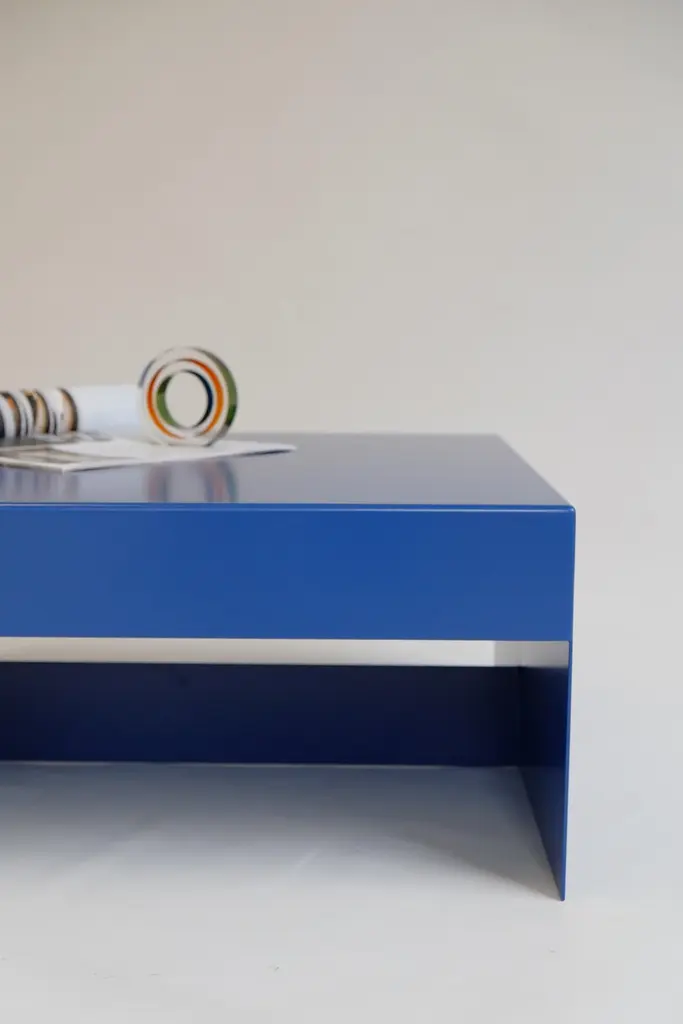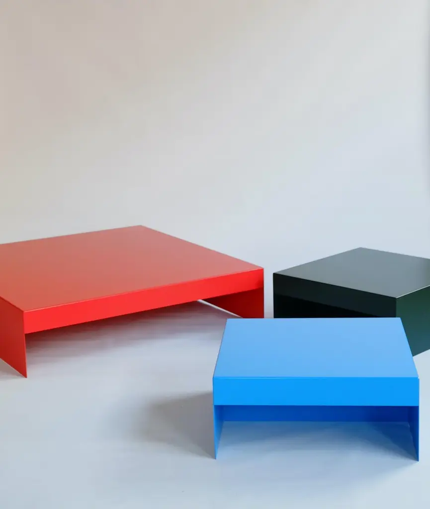 The Single Form coffee table is an elemental design with a focus on form and function. Made in powder-coated aluminium, the Single Form coffee table looks heavy and solid but is fairly light to lift. The Single Form Coffee Table is sustainable as aluminium can be almost endlessly recycled. The Single Form coffee table can be made in bespoke sizes and most RAL colours, please ask for a quote. Suitable for indoors and outdoors. Colour samples available to order from our storefront - LU2894331610202 Measurements of the paperwhite table in the images; 130 cm wide, 75 cm deep, 30 cm high. &New produces pieces that are modern, bold and long-lasting, using honest sustainable materials. Distinctly modern with elegant lines, the designs combine an aesthetic of British wit and Nordic simplicity. The products are handmade in Britain and have plenty of character from the making process. Every piece of furniture is made to order, unique and beautifully imperfect.