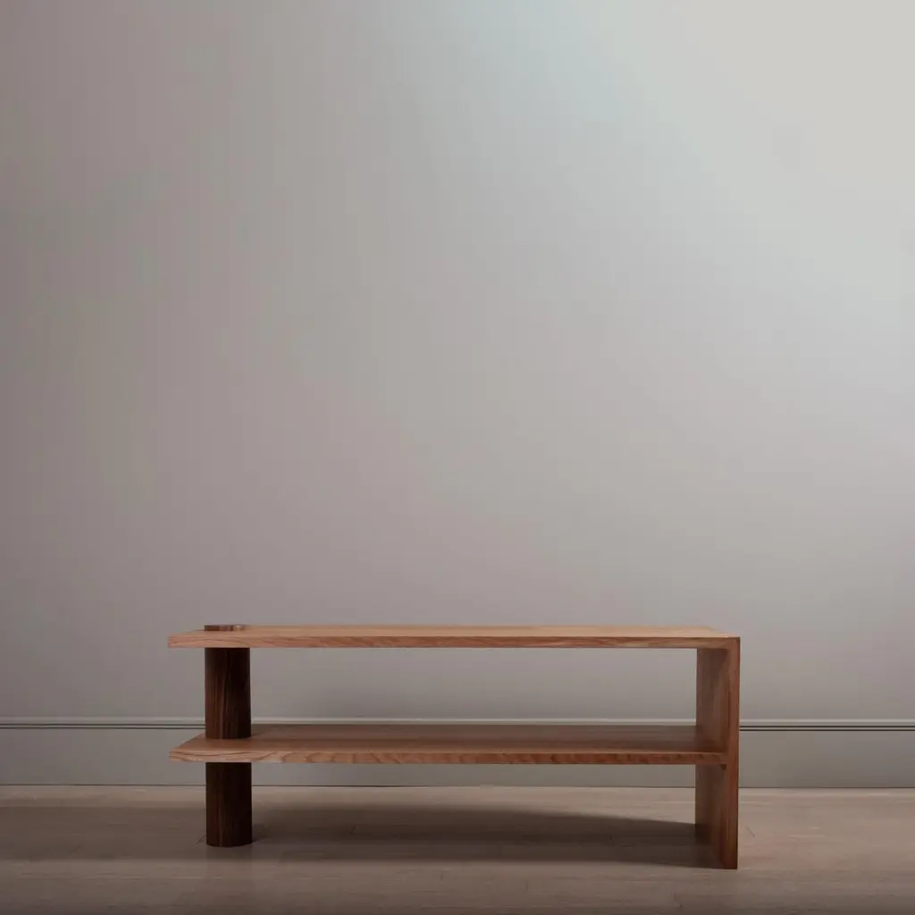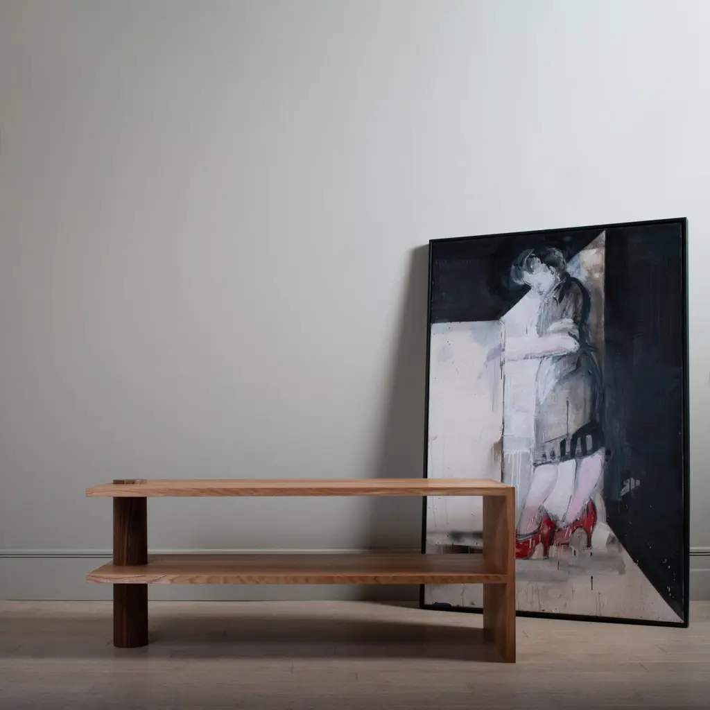 A mighty version of our architectural oak & walnut pillar table. Designed and handcrafted in England using traditional furniture and cabinetry techniques from 30mm thick prime straight grained English Oak with a huge piercing column of American black walnut. Our distinctive oversized hand-cut dovetail jointing to one end for optimum strength and display.These are intended as multi functioning pieces and can be used as end tables/console/sofa/coffee tables etc. They are robust, substantial, bold and visually striking pieces of completely handmade furniture, built to last. Finished in highly durable oils.We can create other versions/adaptations of this design - within practical parameters.We design bold and distinctive pieces of furniture – our main objective is combining the design alongside the natural beauty and properties of the raw materials.These timbers and materials are very carefully chosen for each specific design - maintaining our focus on the benefits, visual impact and strengths of what we use. Our regular use of English Quartersawn Oak is one case in point. It has been the beloved timber of fine furniture makers across the world for centuries. It is costly to produce but provides huge benefits and rewards such as its striking medullary rays and superb stability qualities. By utilising these wonderful and naturally occurring features with our contemporary designs we aim to continue creating some very distinct, tactile and idiosyncratic pieces.These are all completely handmade, in very small numbers, by our skilled craftspeople in England. Contact for international shipping quotations. Shipped with fine art shippers, fully wood crated and insured.