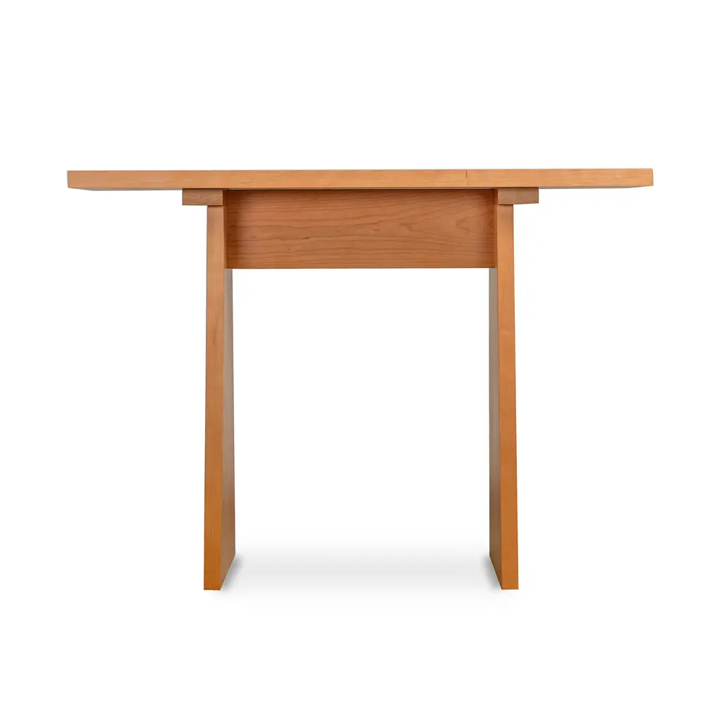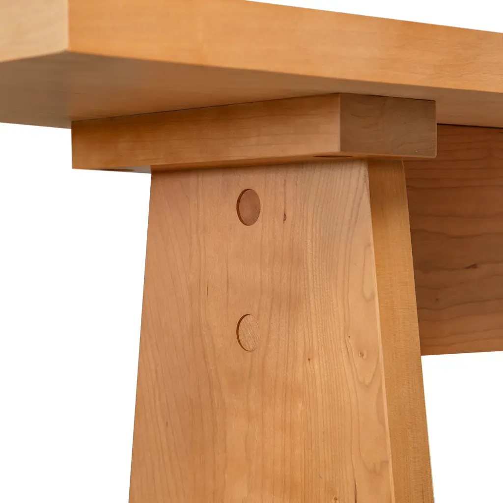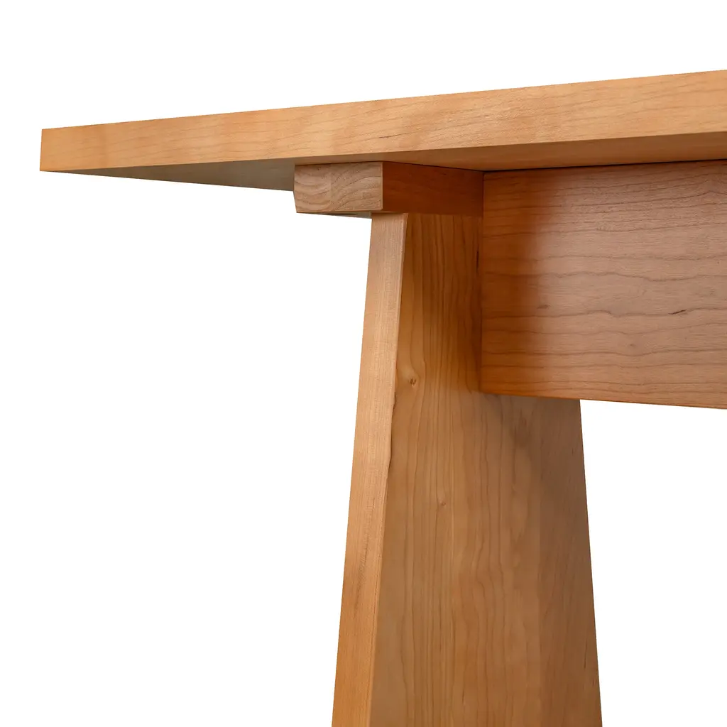 Our Modern Designer Sofa Table is handcrafted in Vermont using sustainably harvested solid woods. Each table is custom made by skilled craftspeople. Natural finish protects and enhances the beauty and grain of the wood. The result is a beautiful, solid wood table perfect for a loft or city apartment. A modern, clean and simple design that looks great in any setting.Base price represents 14" x 42" x 30" sofa table in natural cherryShown in 14" x 42" x 30" sofa table in natural cherryAssembly required: attach legs with provided hardware