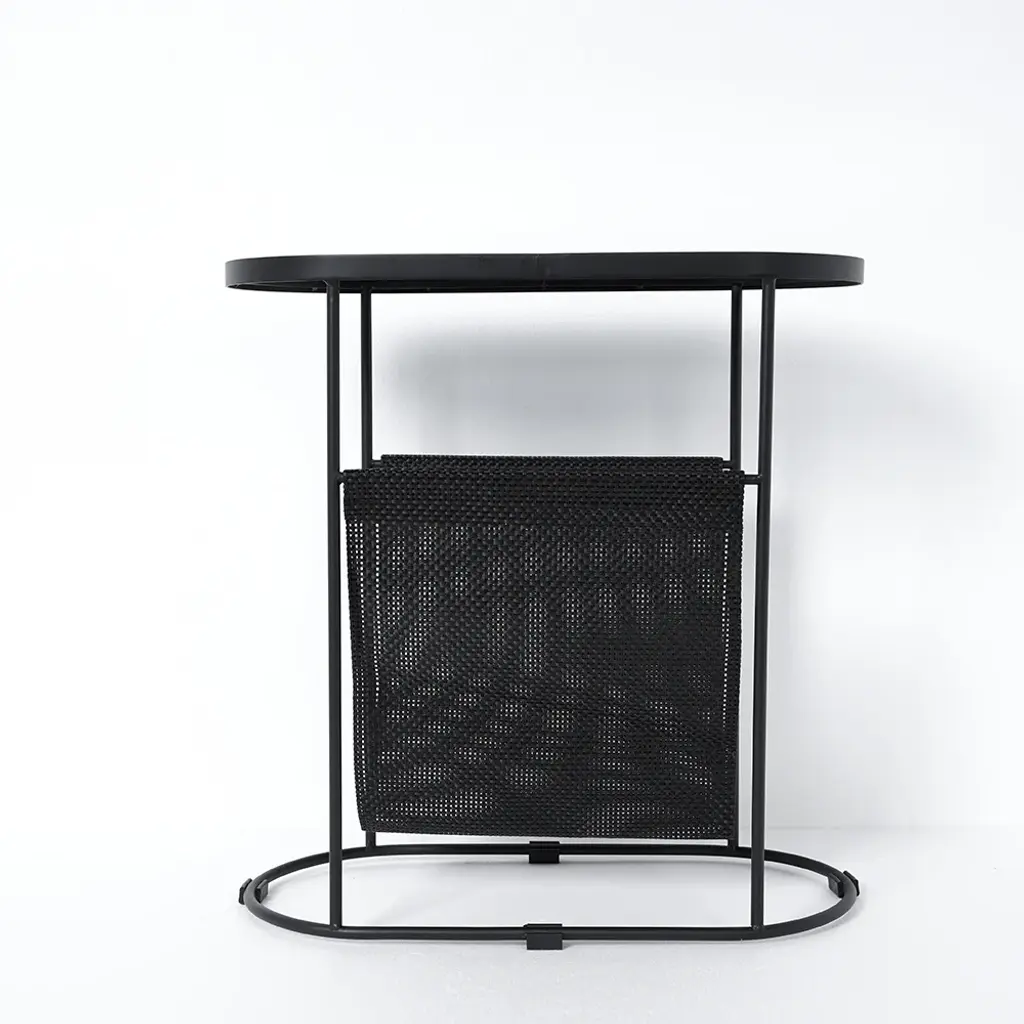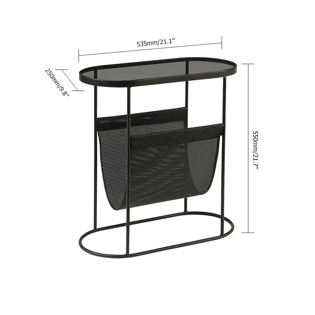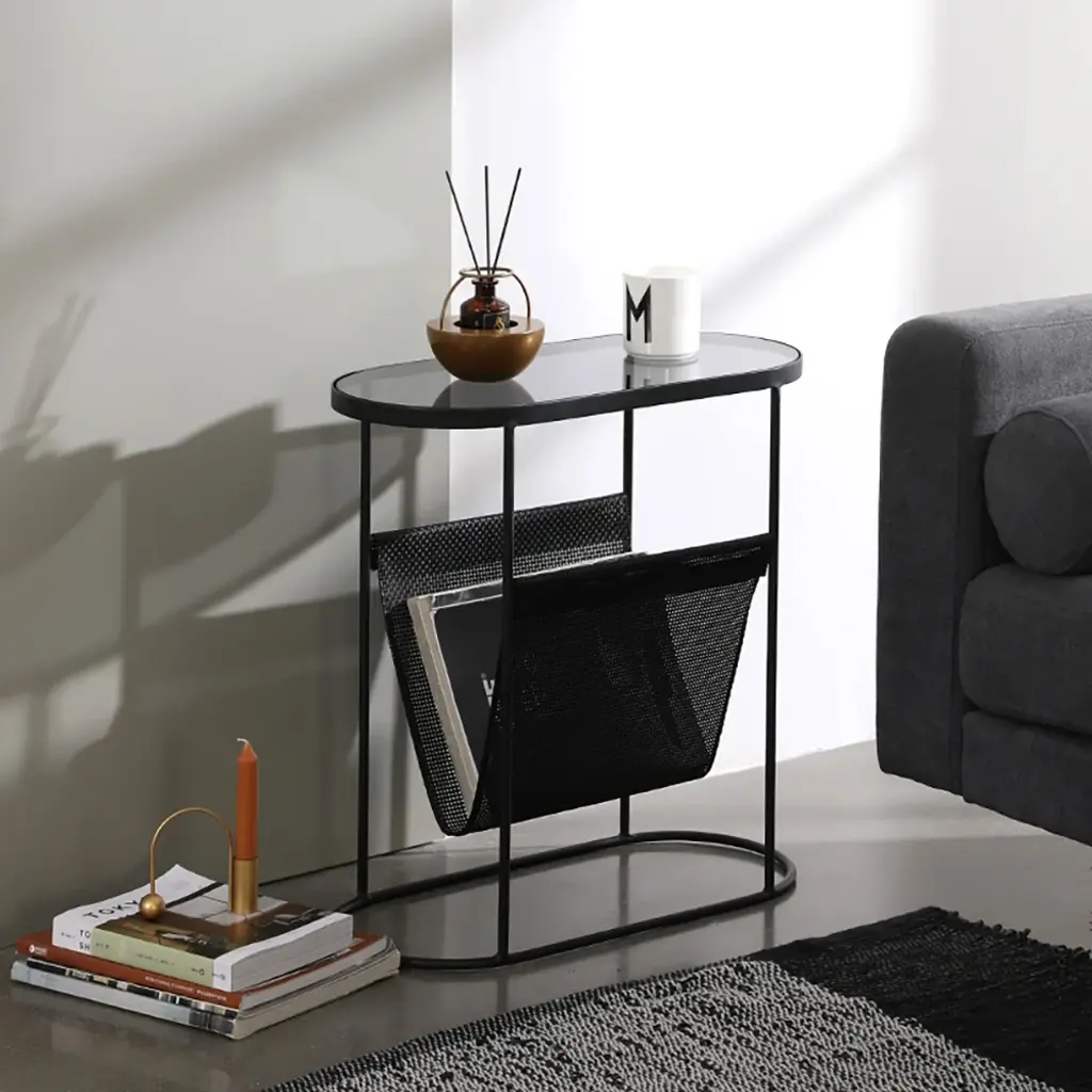 Modern Side Table Black End Table Metal Accent Oval Table Magazine Holder Sofa Table