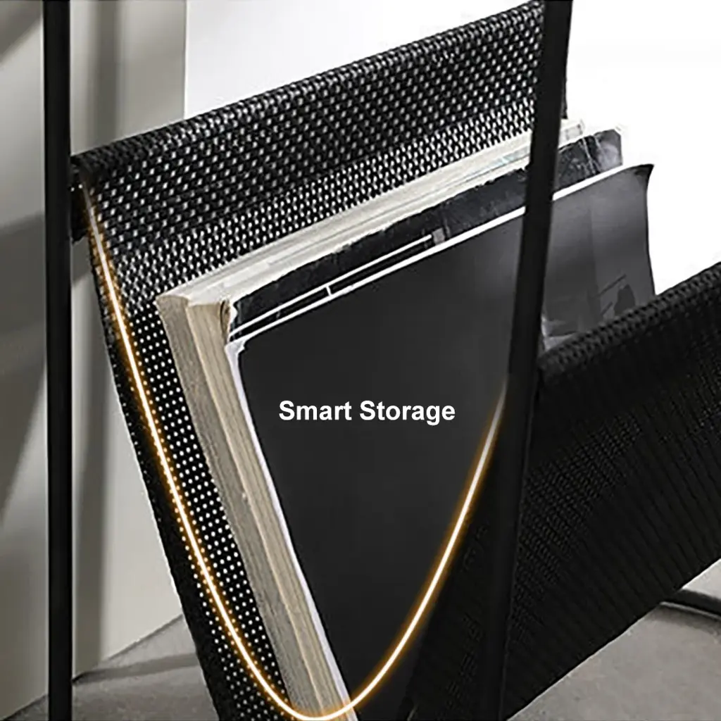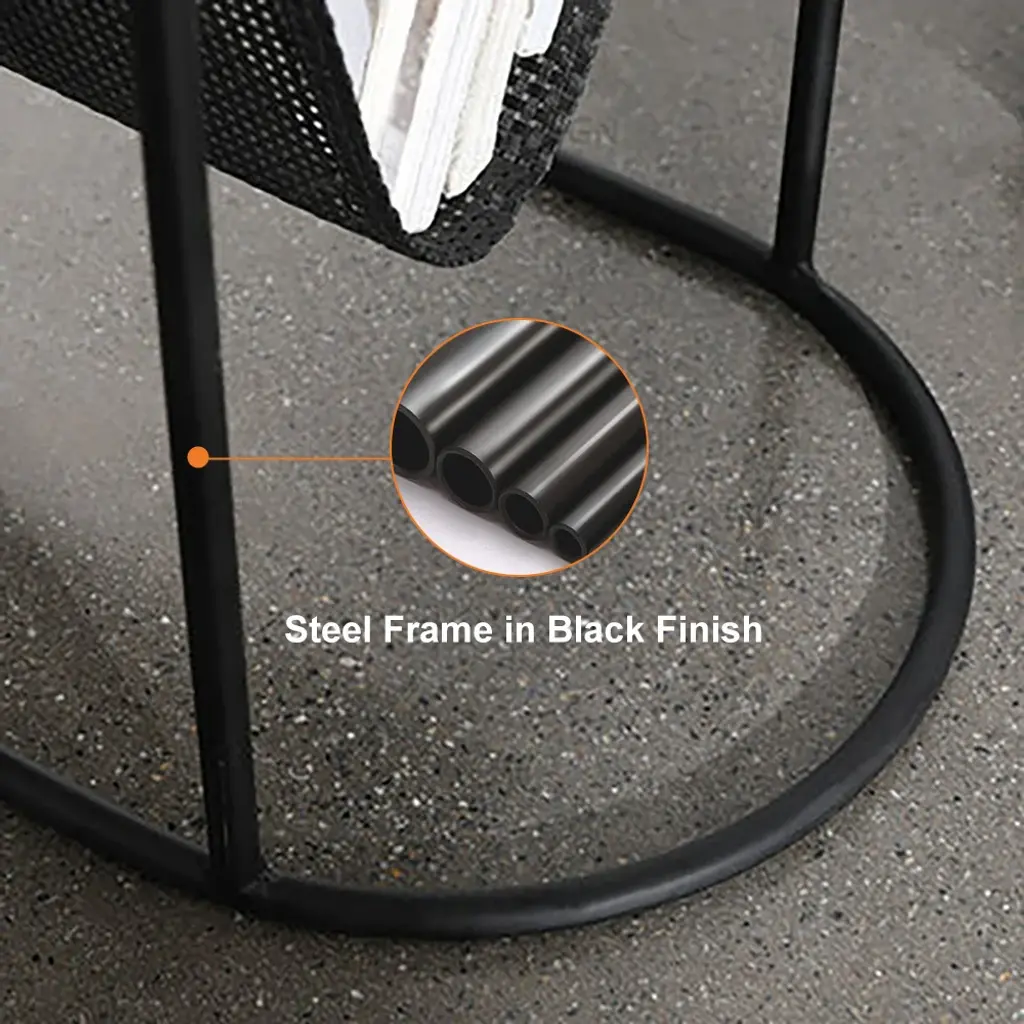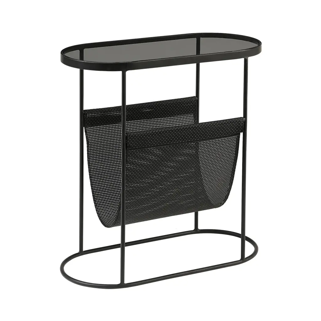 Modern Side Table Black End Table Metal Accent Oval Table Magazine Holder Sofa Table