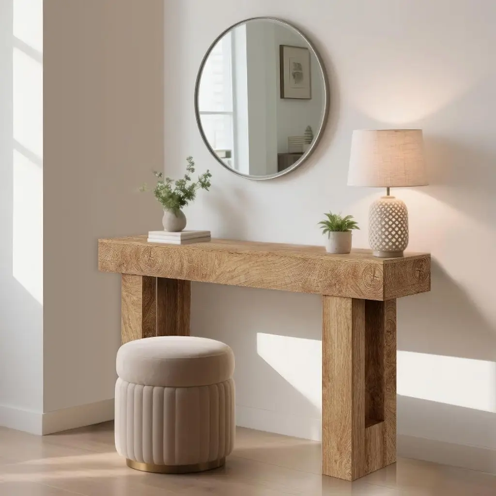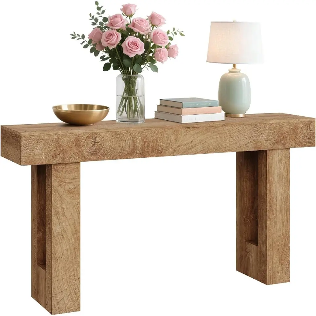 Bring a warm and welcoming touch to your home with the Nasitip 63" Rustic Farmhouse Console Table. Featuring a spacious oak-finished top and clean-lined silhouette, this console table effortlessly blends farmhouse charm with industrial durability. Crafted from sturdy engineered wood and supported by reinforced legs with protective foot pads, it’s designed for everyday function and timeless style. Whether placed behind the couch, in the entryway, or along a hallway, its generous 63-inch surface offers the perfect spot to showcase framed photos, greenery, or decorative accents. A versatile piece that elevates any room with ease.