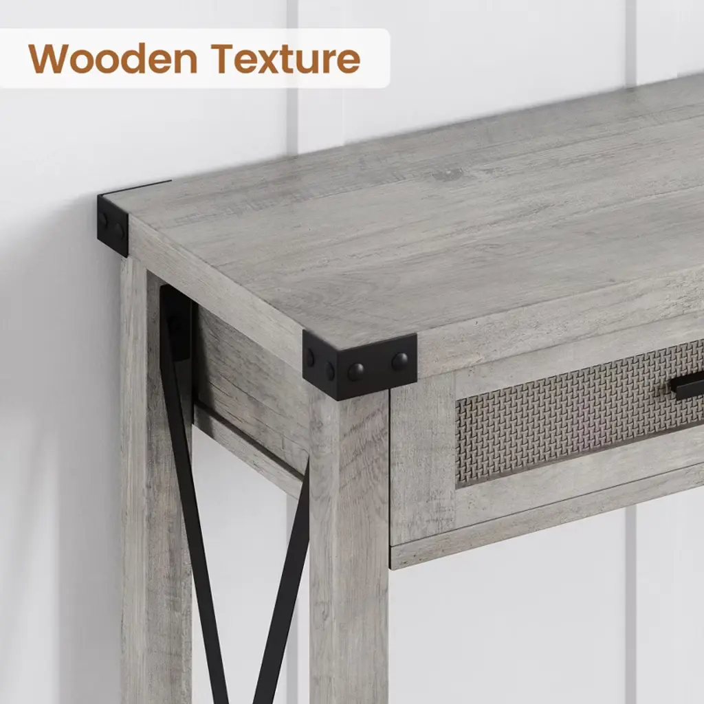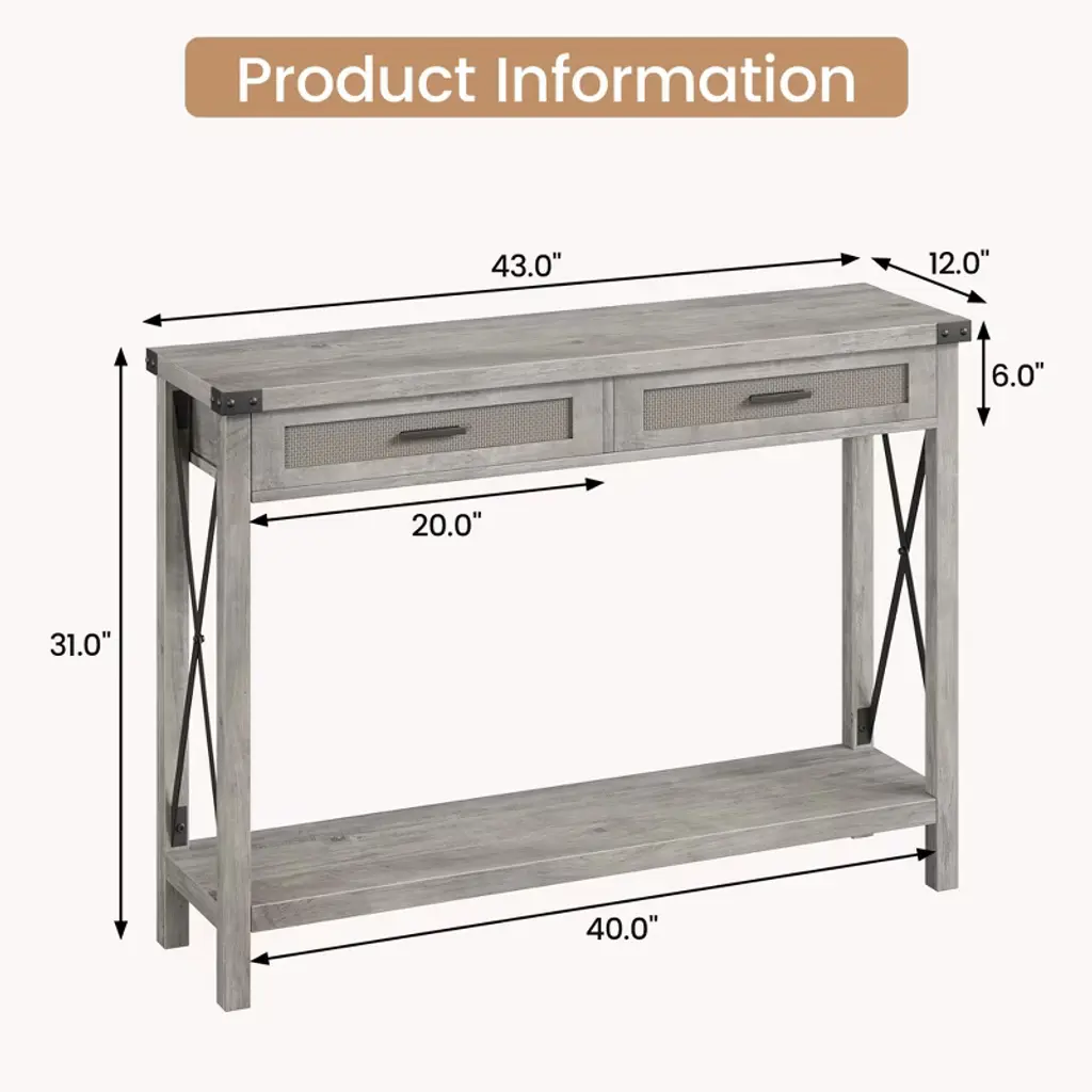 Nasitip Farmhouse Sofa Table - Console Table With Rattan Drawers, Entryway Table With Storage For Living Room, Hallway, Foyer-grey