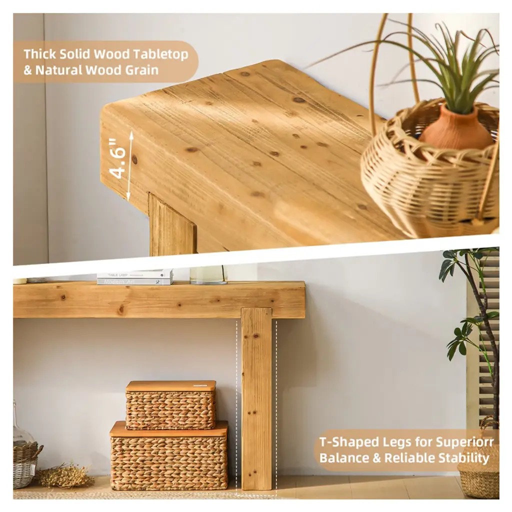 The ORRD 63" Solid Wood Console Table adds rustic farmhouse charm and versatile functionality to your home. Crafted from durable solid wood, this narrow rectangular table is perfect for placing behind a sofa, in the entryway, or along a hallway. Its natural wood texture and sturdy design provide both style and stability, while the slim profile makes it ideal for small or long spaces. Whether used to display décor, store essentials, or create a welcoming accent, this farmhouse sofa table blends durability with timeless appeal.