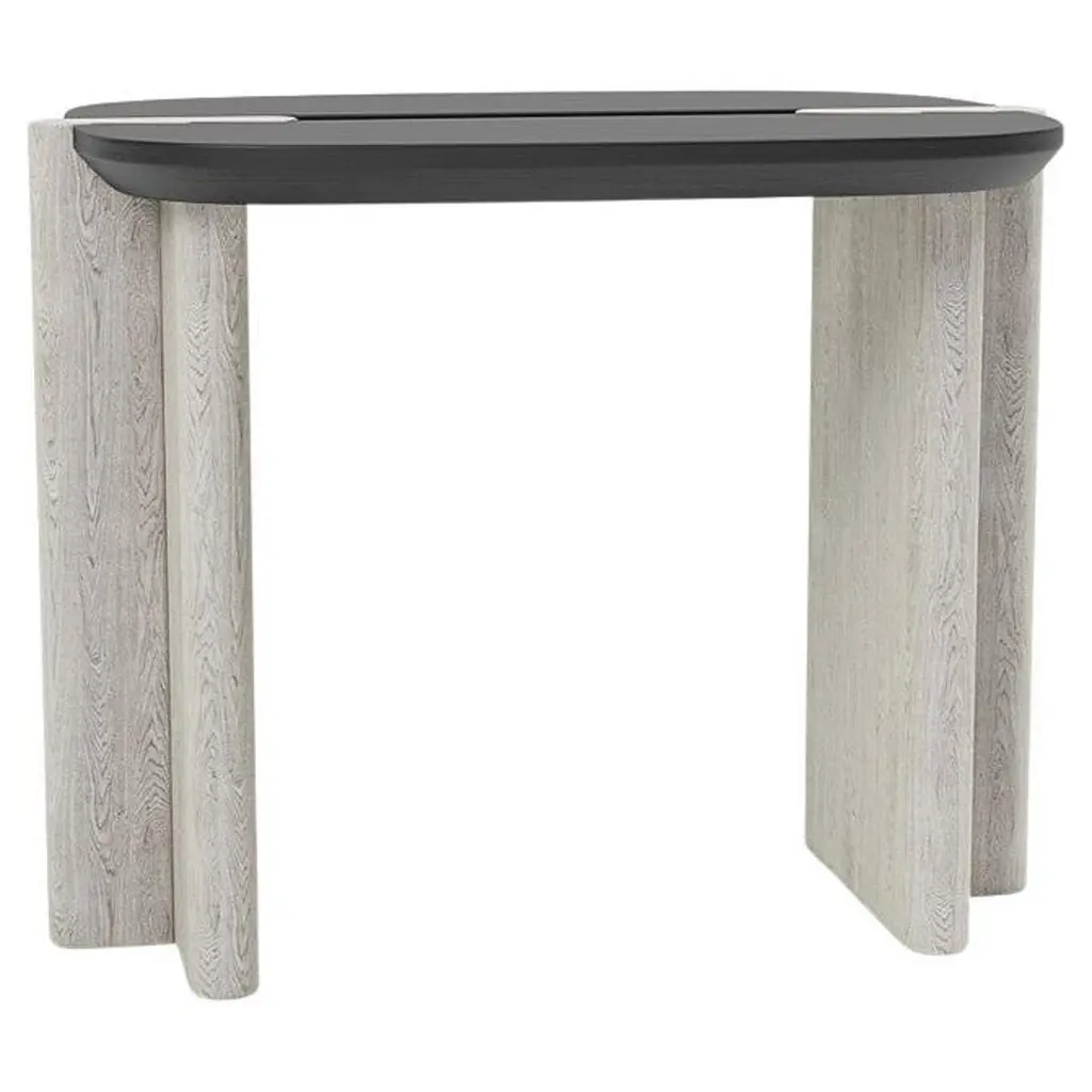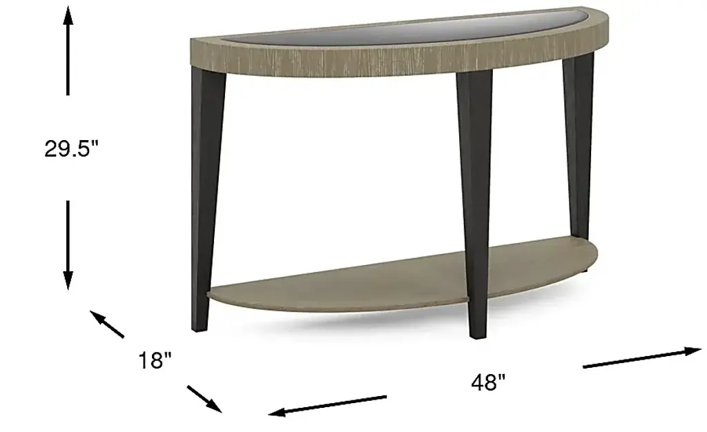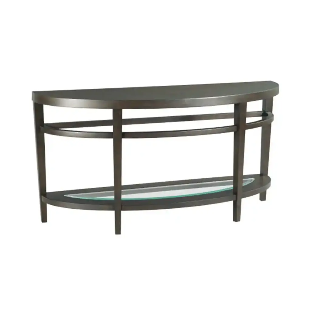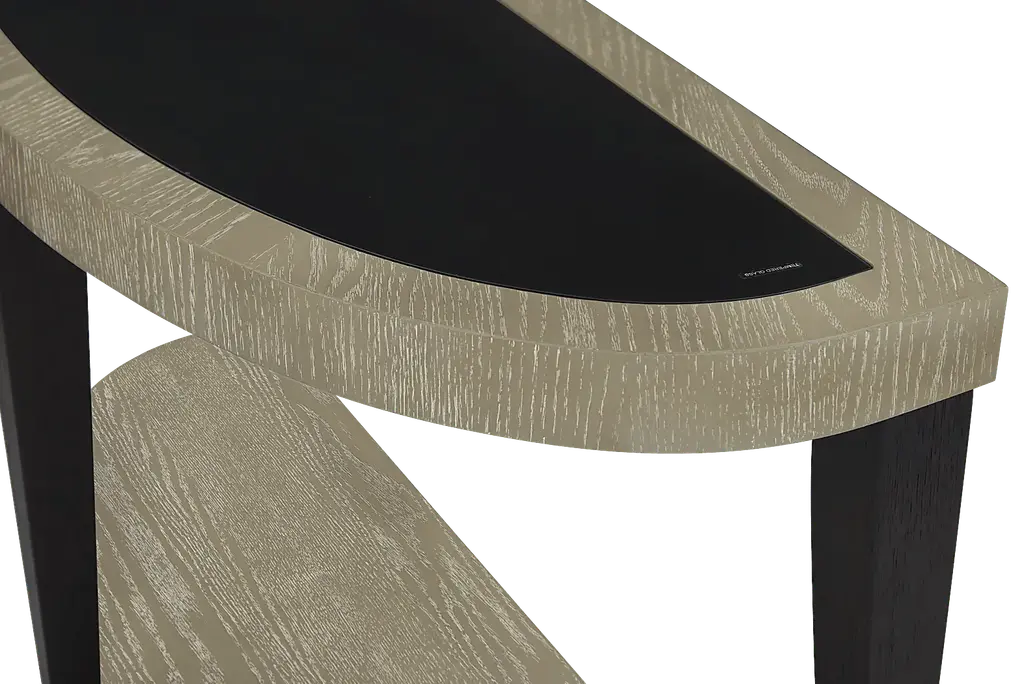 With design details to delight guests and family, the Rosalie sofa table is a functional work of art that everyone will want to come back to again and again. This transitional piece is beautiful from every angle with unique and contrasting espresso and gray oak veneers. The half-moon tabletop features a handsome tempered glass insert to add a touch of class to any relaxation experience.