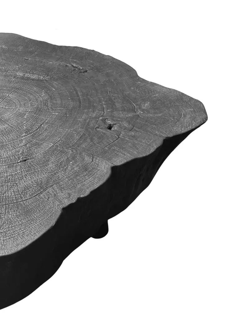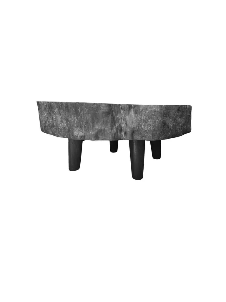 Introducing our exquisite organic mango wood round sofa table, beautifully crafted with a striking burnt finish that enhances the natural beauty of the wood. This stunning piece showcases a rich array of textures and shades, highlighting the unique grain patterns that make each table one-of-a-kind. The warm tones of the burnt finish create an inviting ambiance, making it a perfect focal point for any living space. Whether used for displaying decorative items or serving as a functional surface for drinks and snacks, this sofa table seamlessly blends rustic charm with contemporary style, adding character and warmth to your home. The table sits atop 4 slender legs. Due to the nature of the raw materials used to create this product each final product will be unique and vary in terms of wood textures and form.