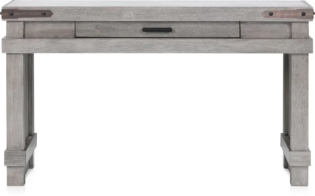 Wood grain detailing, chic metal accents—the Sterling Sofa Table brings timeless style and storage to your space.