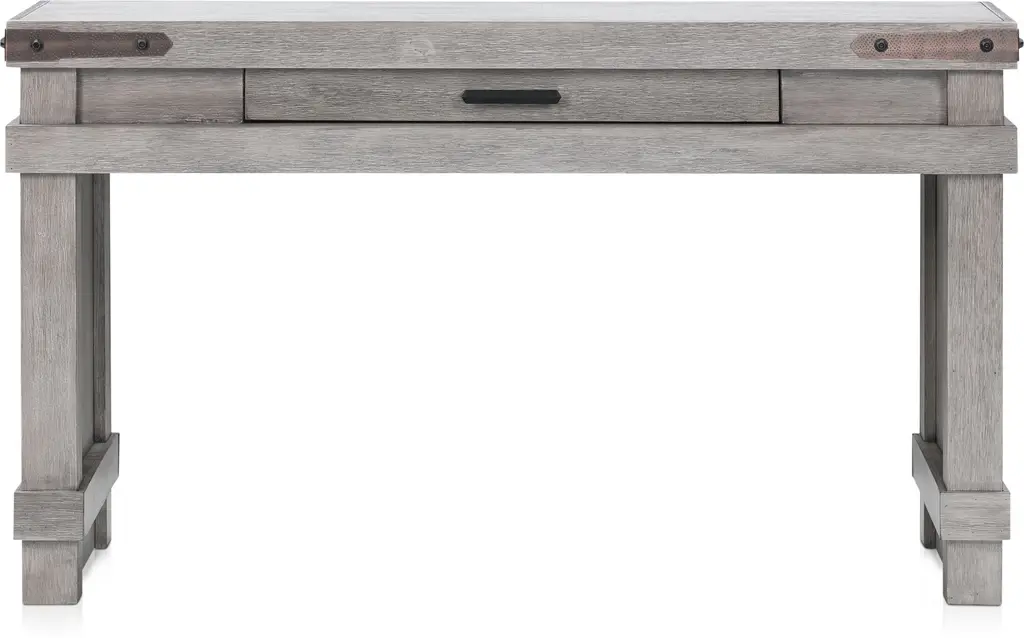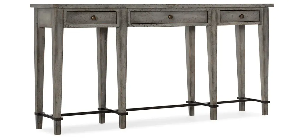 Woodgrain detailing, chic metal accents—the Sterling Sofa Table brings timeless style and storage to your space.
