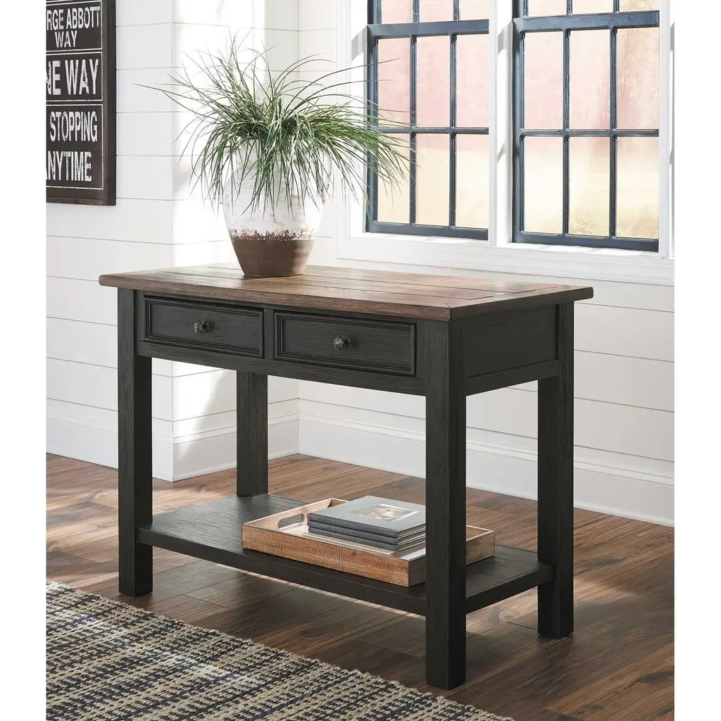 Shabby chic with a hint of down home country, the Tyler Creek Sofa Table by Ashley Furniture with textured black finish is all the talk of todaytms design world.