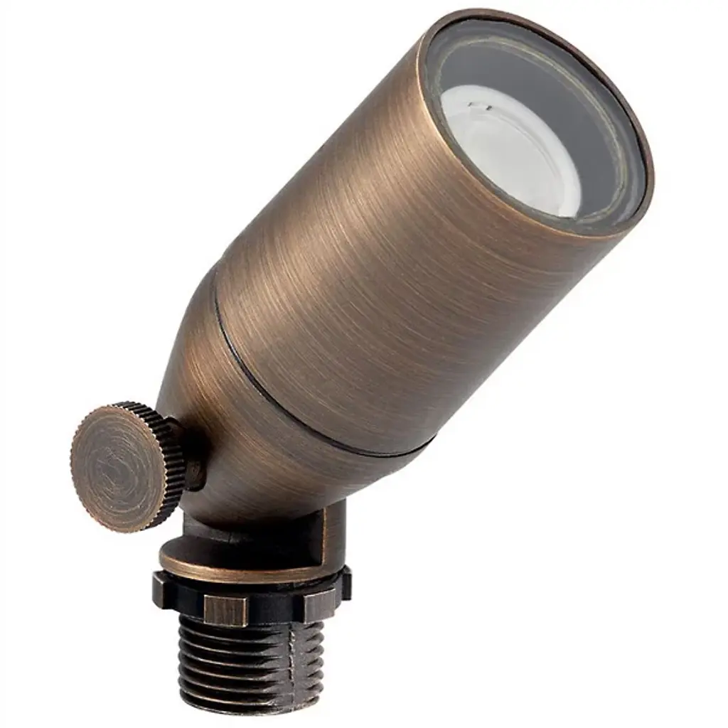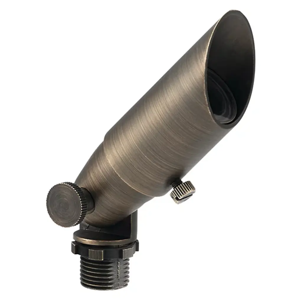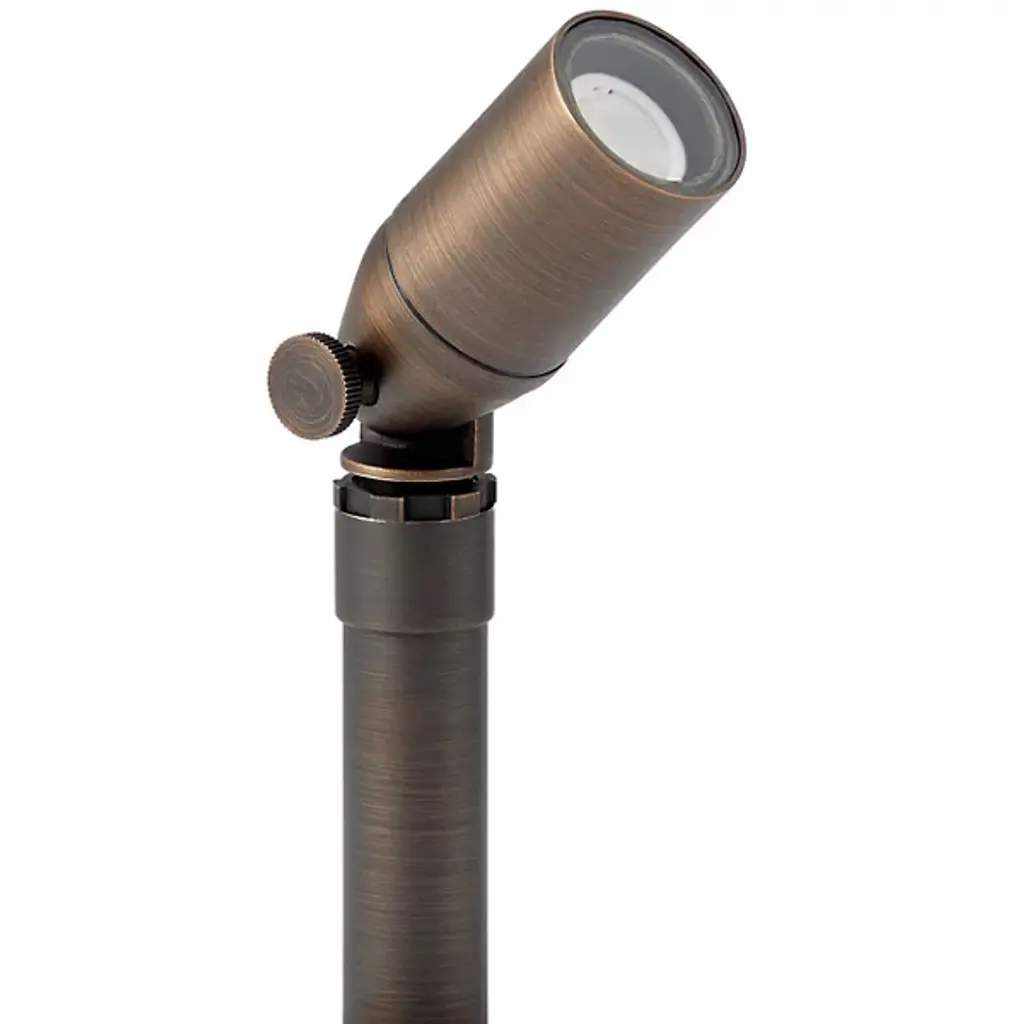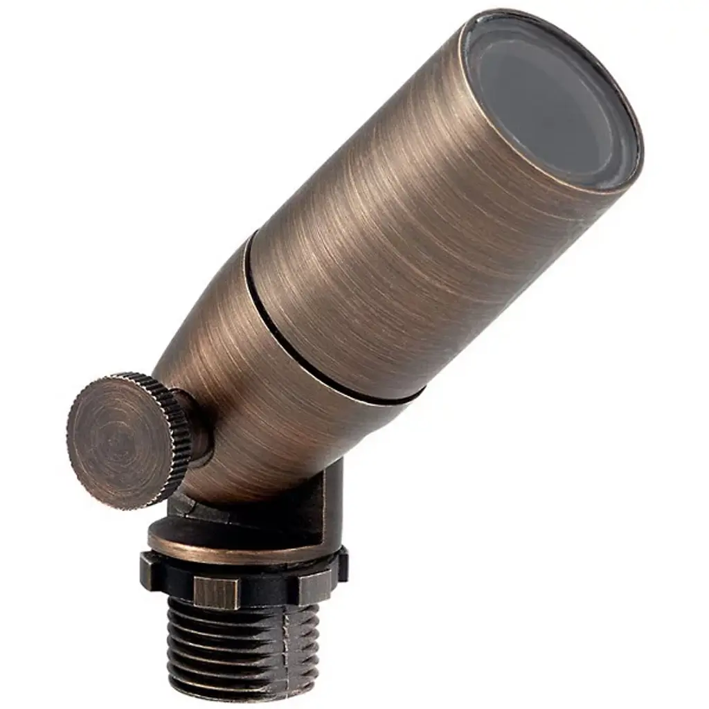 The 12V Adjustable Outdoor Spotlight by Kichler offers a durable, Solid Brass landscape feature to highlight tree clusters, walls, plants and more. A sleek, bullet-shaped lamp head fires a crisp, warm beam of light while a clear tempered Soda Lime Glass lens remains strong throughout the rainy and wet seasons. Line multiple spotlights throughout your landscape space for a brighter and safer outdoor experience.