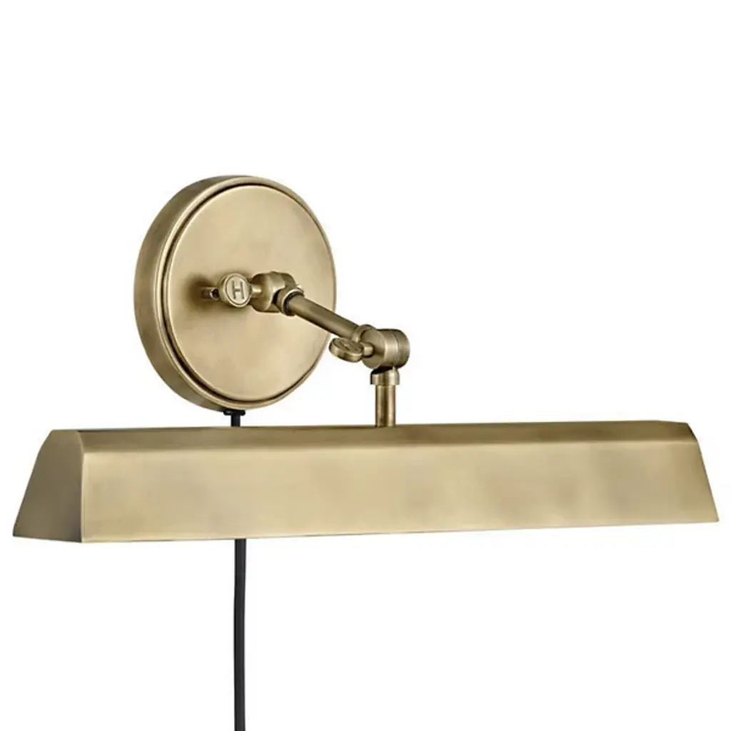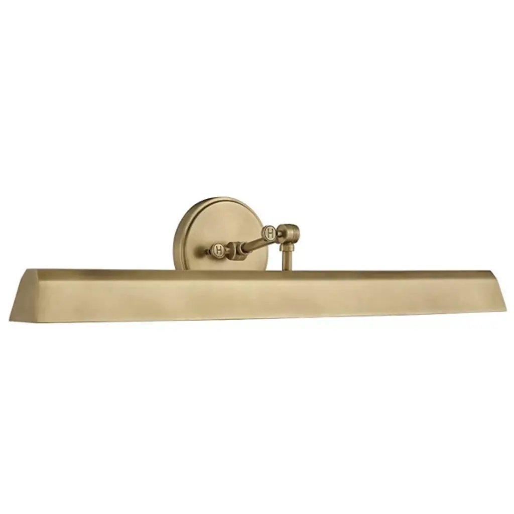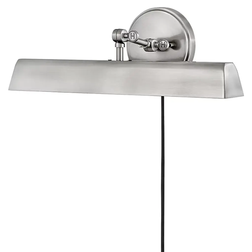 Make an impact on indoor illumination with the fabulous, flexible form of the Arti Accent Light from Hinkley Lighting. An elegant, adjustable fixture in strong steel that embodies intricate transitional design principles, it extends short, posable arms from a stepped disc wall plate, seating bold lamping beneath a broad, hooded shade with an open base. Ideal for illuminating wall art indirectly, the shade arrangement artfully eliminates glare to the sides, transmitting a mix of reflected wall wash and direct downlight below.