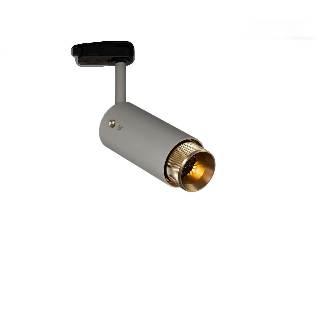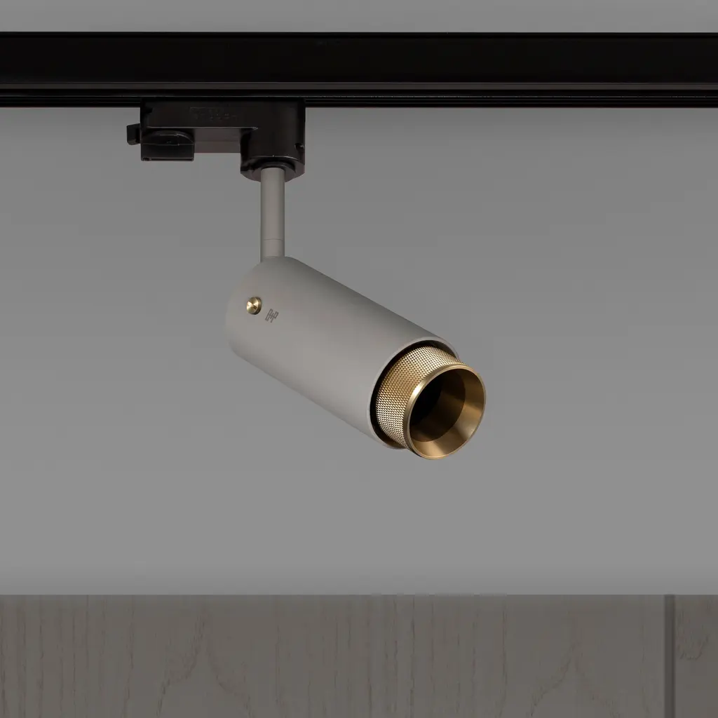 A track spotlight made from stone powder coated metal with cross-knurled solid metal detailing.