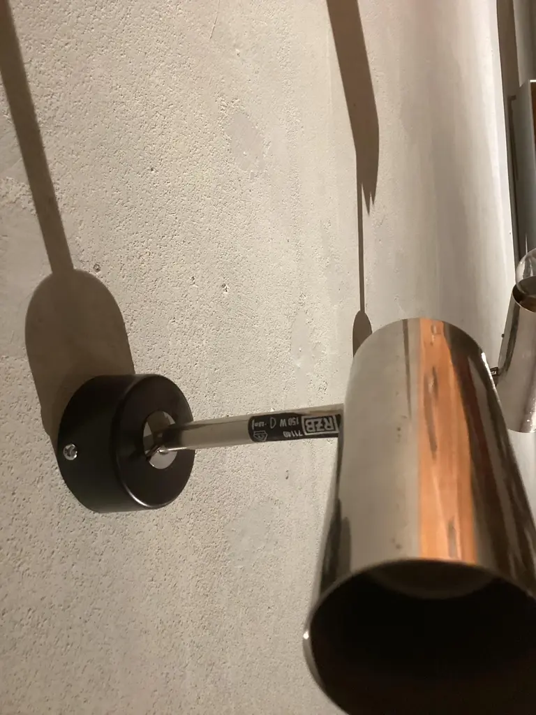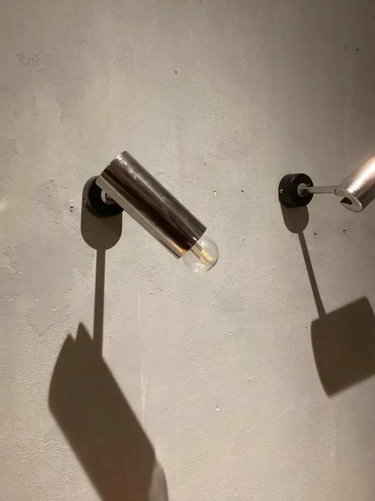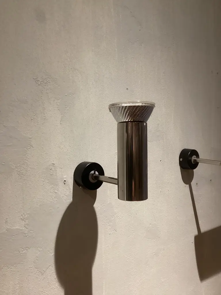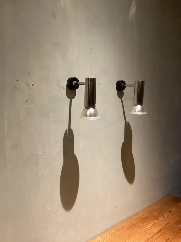 Minimalist Adjustable Spotlight Wall Sconces by Rudolf Zimmermann for Rzb, Germany, Set of 2, in Very Good conditions. Designed 1970 to 1979 This piece has an attribution mark, I am sure that it is completely authentic and take full responsibility for any authenticity issues arising from misattribution, Up to 250V (Europe/UK Standard).The wiring of this item may be original and might need replacement, if not specified otherwise.