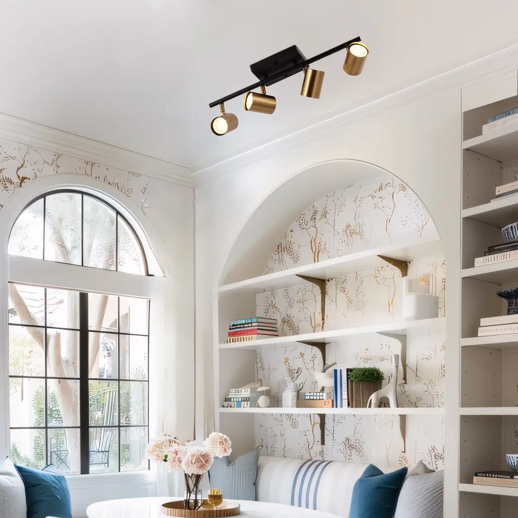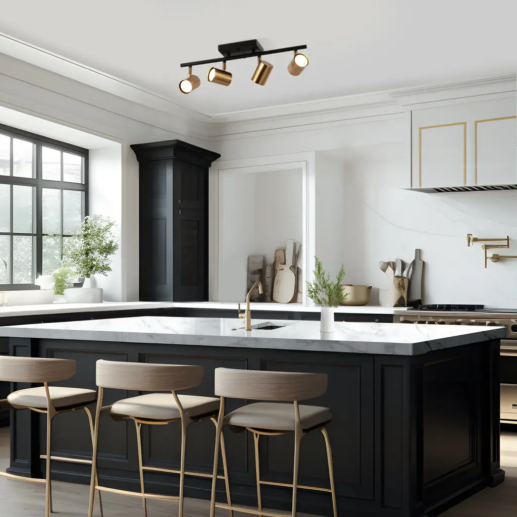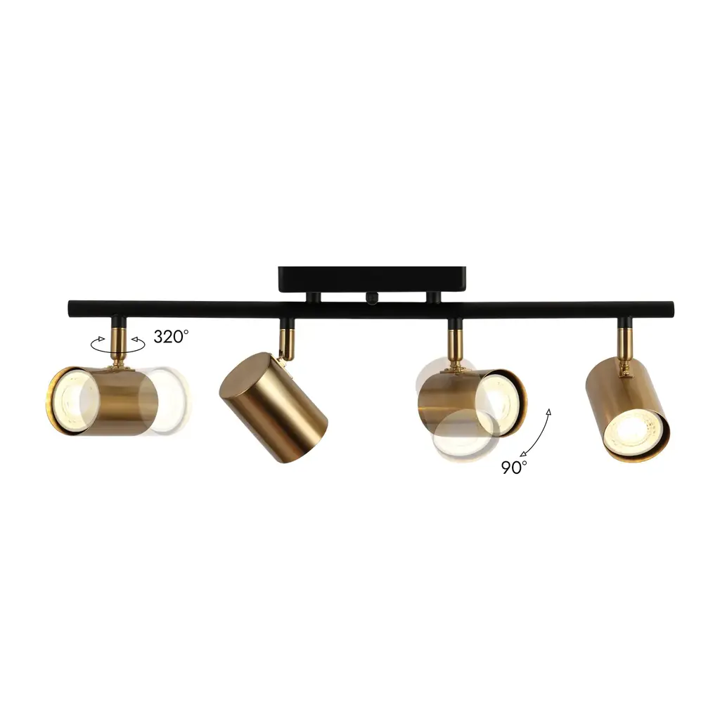 Modern 4-Light Adjustable Head Spotlight Flush Mount Ceiling Light - Black Gold
