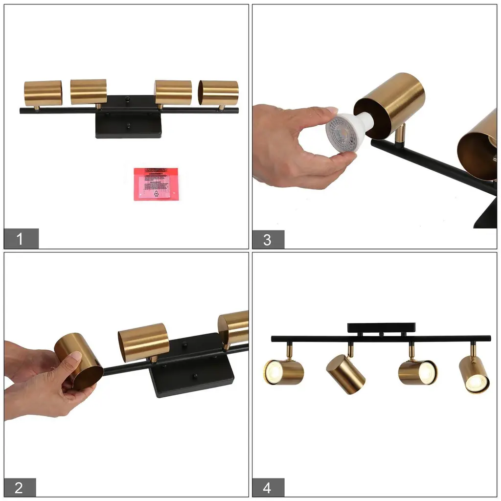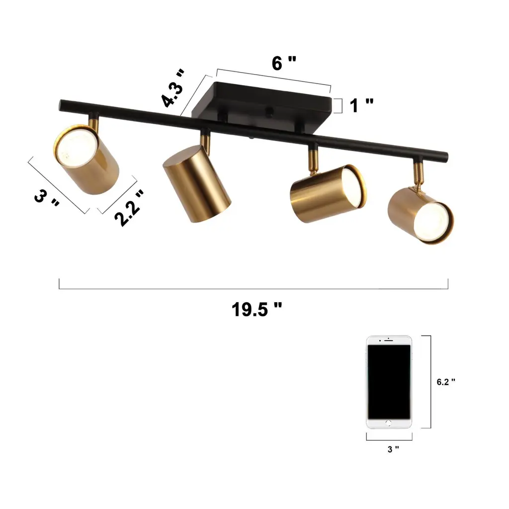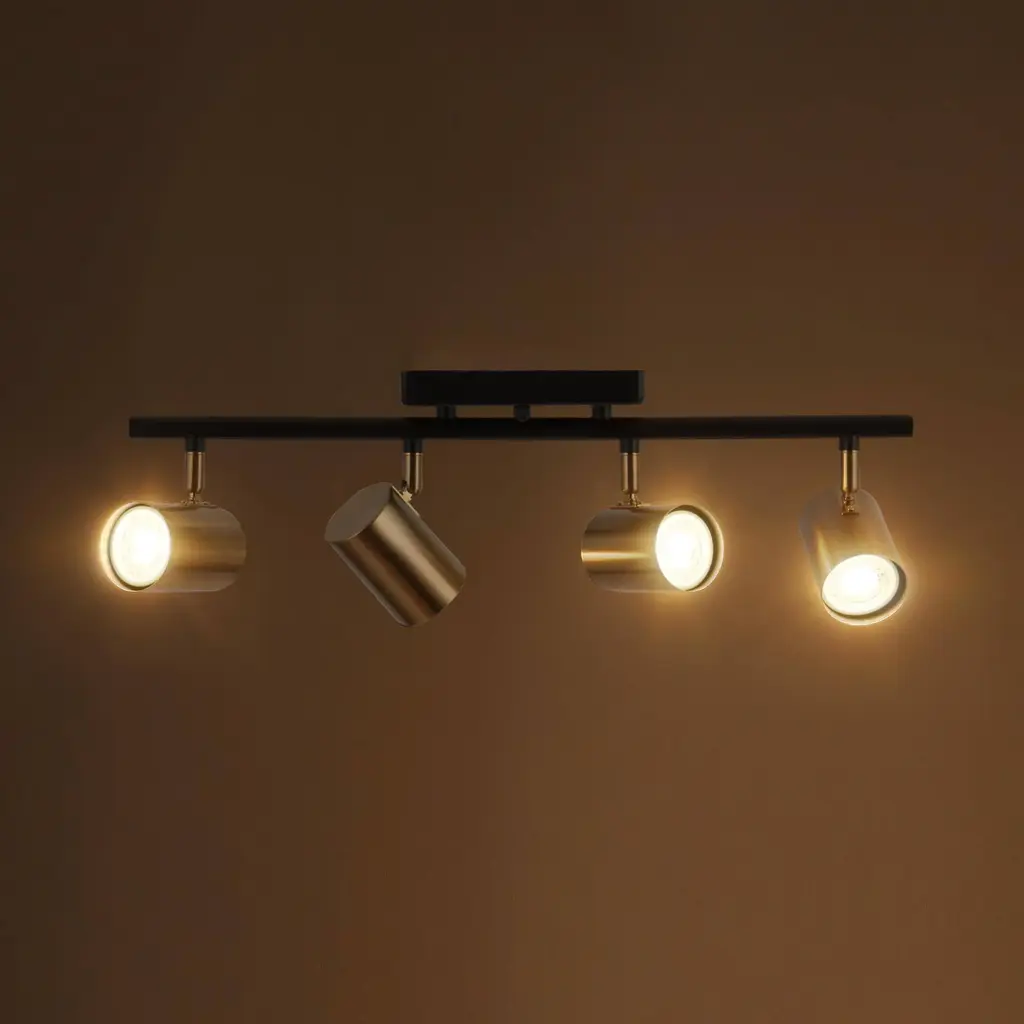 Modern 4-Light Adjustable Head Spotlight Flush Mount Ceiling Light - Black Gold