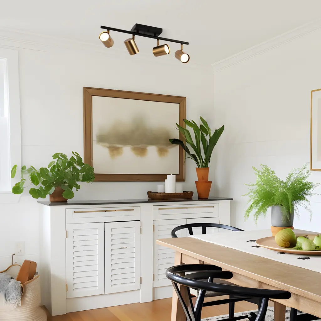 The track lighting offers a variety of styles that keep industrial and modern in mind. With four cylindrical track heads that from a slender track bar, present a slim, streamlined profile. The lamp head can be independently adjusted, giving you the option to direct light where you need it the most.Features:
