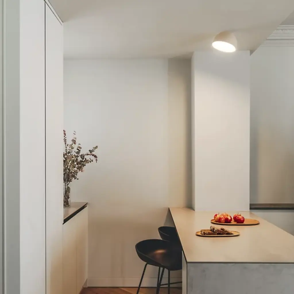 Vibia’s Plusminus Solo LED Flat Diffuser Spotlight enhances modern ceilings with simple minimalism. A Diez Office design expertly crafted in Spain, this gently curving, dome-shaped fixture offers a balance of ambient and directional lighting. Its textured aluminum housing surrounds an integrated polycarbonate diffuser, working together to cast a soft, controlled glow. Ideal for accentuating architectural features or creating rhythm across a space, this versatile spotlight blends seamlessly into contemporary interiors while adding a quiet, purposeful presence.