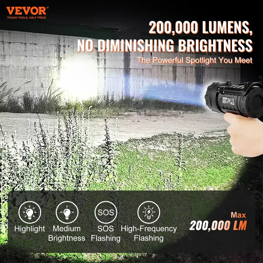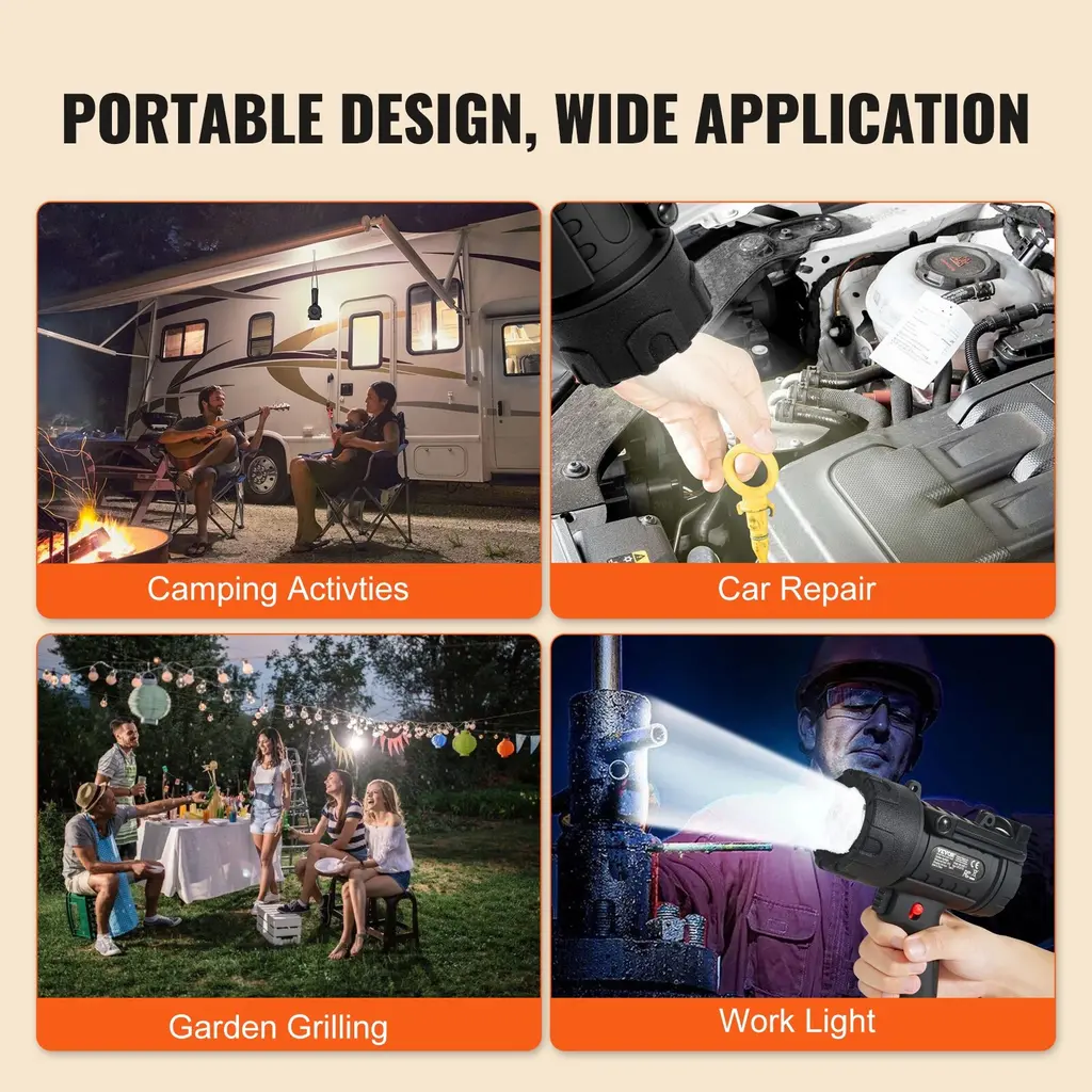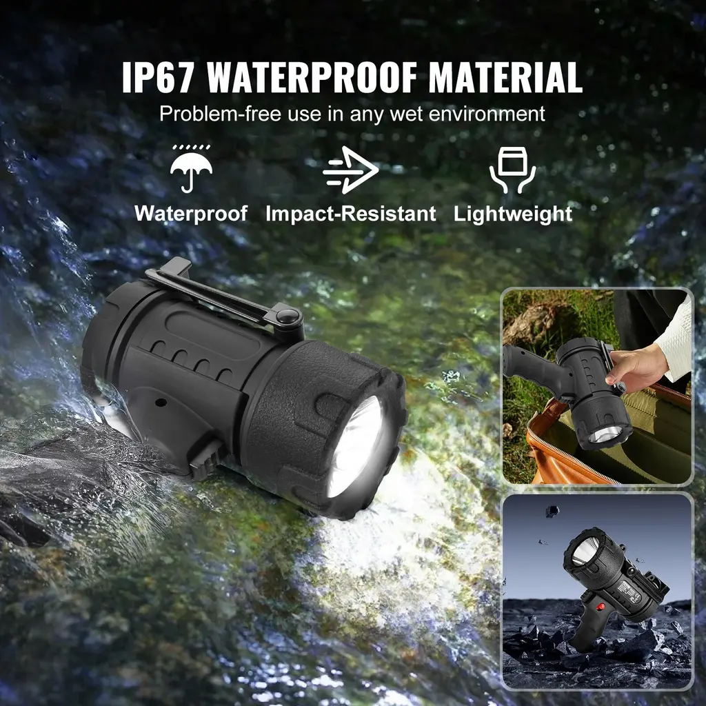 Rechargeable Spotlight Flashlight, Ip67 Waterproof Handheld Led Spot Light, For Hunting Boating Camping - 200,000 Lumens