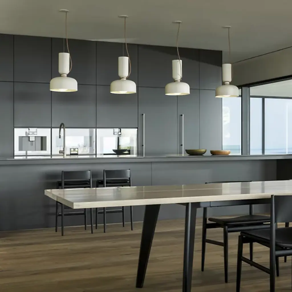 Showcasing a modern twist on a classic, silhouette form, the Spotlight Volumes B Series LED Pendant by ANDlight is a timeless take on suspension lighting. From designer Lukas Peet, the fixture features a wide, shallow base, perfect for maximizing the amount of directed light into the room, while also balancing the focus onto the tasteful fixture itself. The pendant is made of a sleek aluminum body and hangs from a single, thin wire. The uplight can be customized from four distinct shapes and a nylon rope that covertly doubles as the electrical cord pleasantly wraps around the thin center, effortlessly adding an elegant touch.