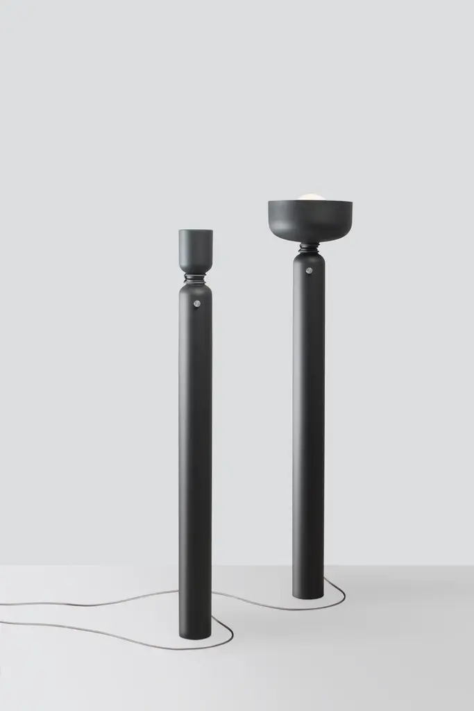 Spotlight Volumes, floor lampDesign: Lukas Peet, Editor: ANDLightModel shown: BCompositions– Up light: A, B, C or DInspired by spotlights, the Spotlight Volumes series is based on four unique shade profiles which combine in various ways. While designed with a modern silhouette, the inspiration is based on a classic shape, giving a timeless air to the fixture. The pendant version features a conventional down light as well as an unconventional uplight, offering multidirectional illumination.Materials: Spun Aluminum ShadeElectrical– 100-240V– Billet Dimmer Knob– 2700K– E26/27 15WFinishes– Sage– Avocado– Vanilla– Black.