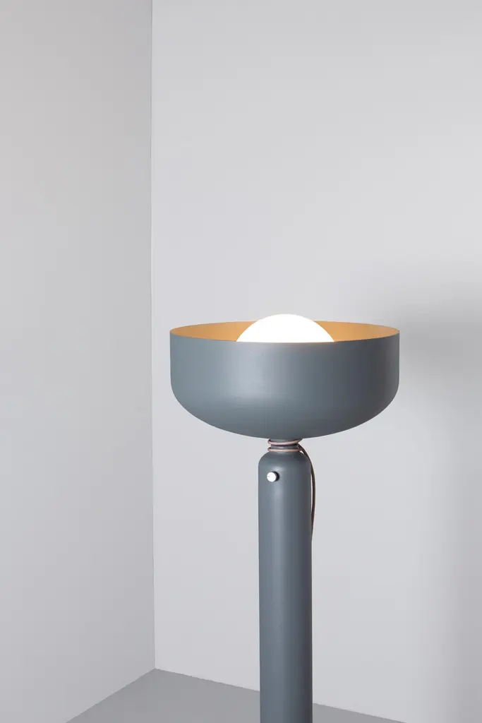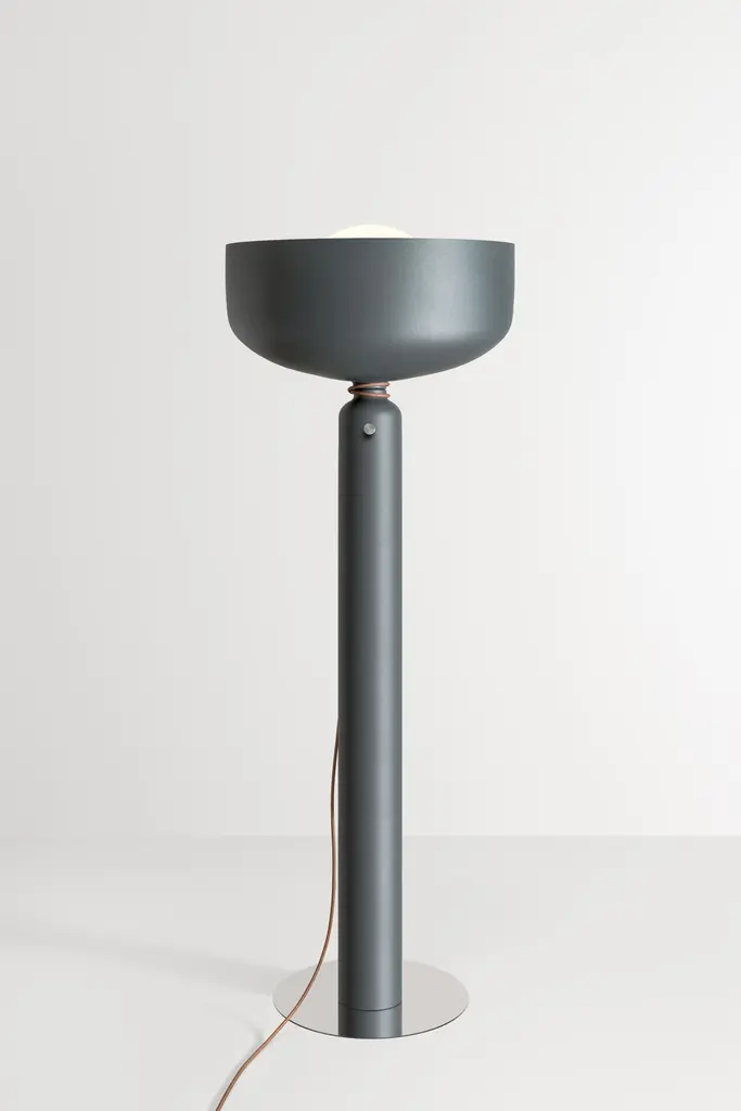 Spotlight Volumes, floor lampDesign: Lukas Peet, Editor: AND LightModel shown: ECompositions– Up light: A, B, C, D or EFloor Lamp: The Spotlight Volumes Floor Lamp shows five unique spun aluminum shade profiles that range from wide to narrow, creating various distinct combinations. Its classic silhouette is complementary to any space as it expresses symmetry, balance, and proportionate form. Each lamp comes with an energy-efficient dimmable LED light bulb and glass globe.The electrical cord wraps and knots around the fixture under the top shade, to delineate the point of connection between the two elements. A weighted base is lined with felt for smooth contact with any surface.Materials: Spun aluminum shade– Input Voltage: 110–120V, 220–240V– Lamping:1 x E26/E27 (Max 16W) Socket16W 2700K A21 Dimmable LED Lamp Included (120V version only) 140mm/5.5” Glass Globe for A Shade 175mm/7” Glass Globe for B Shade 300mm/12” Glass Globe for E Shade– Controls:Hand dimmer switch includedFinishes– Sage– Avocado– Vanilla– Black.